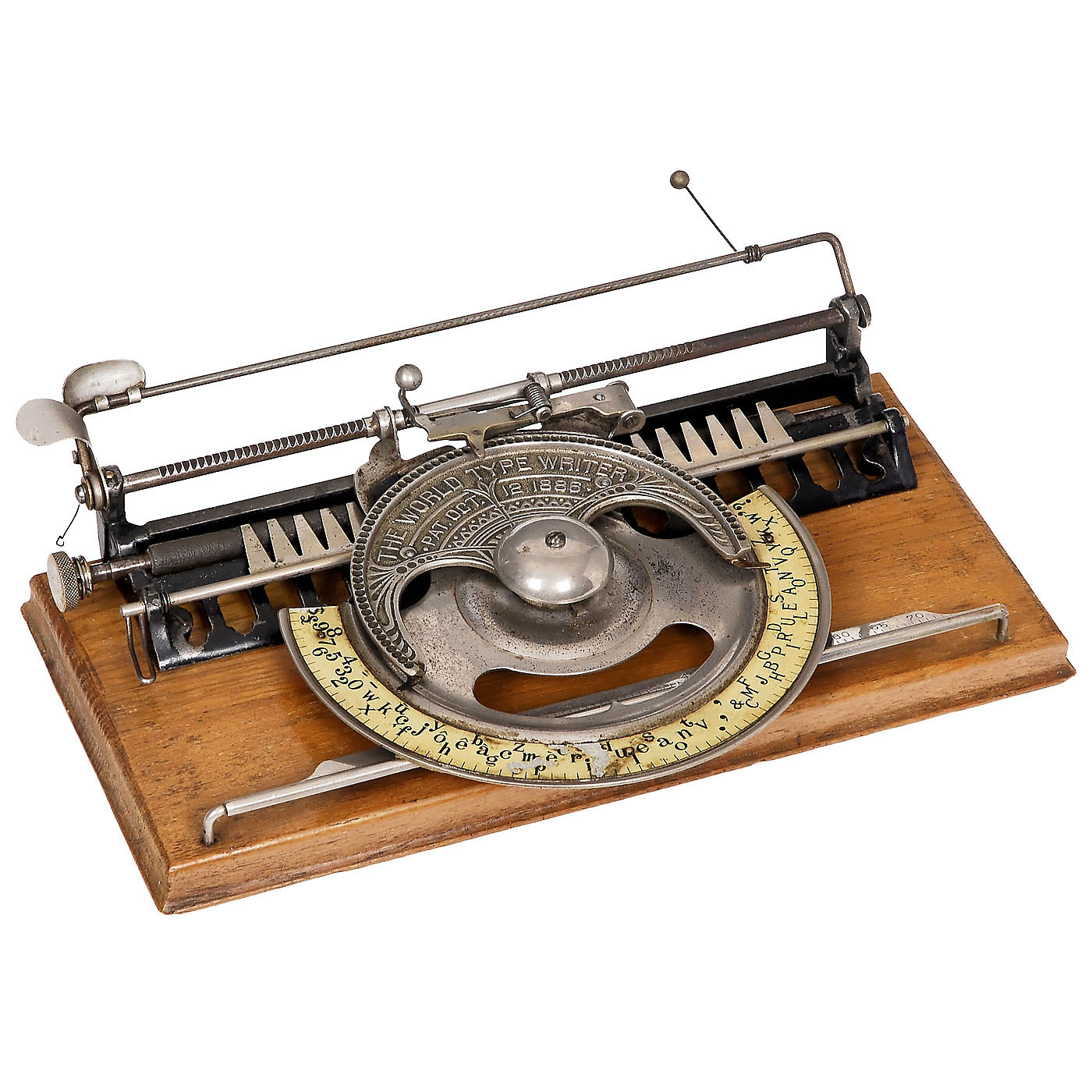 American index typewriter with a semi-circular type plate, patented by John Becker in 1886, no rubber sheet or index pointer, carriage defective. - Literature: Martin, 1949, p. 93.