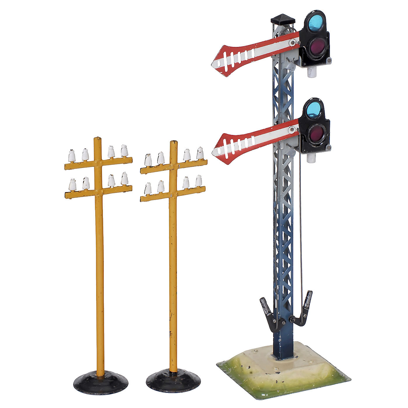1) 2 telegraph masts, height 8 4/5 in., c. 1925. - And: 2) Signal, spirit light, height 13 in., c. 1915.