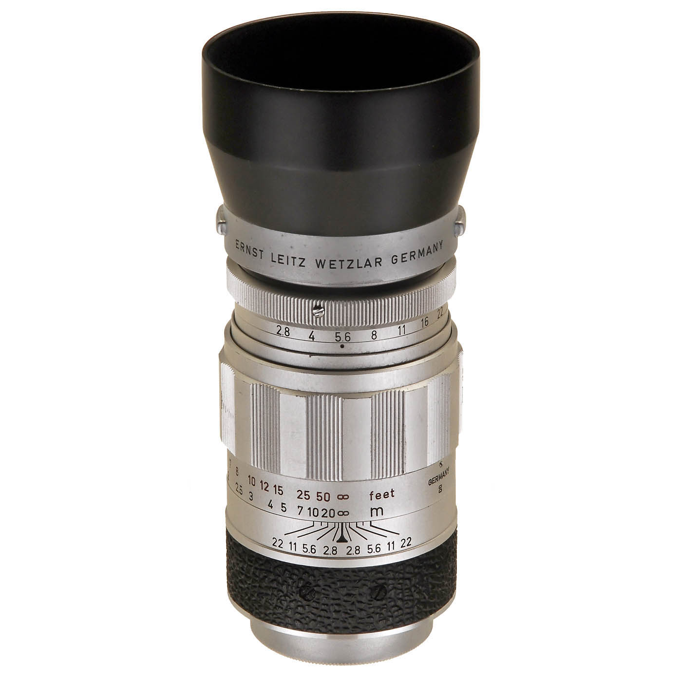 Leitz, Wetzlar. No. 1693955, with lens hood 12575 and both lens caps. Very rare M39 screw-mount version.