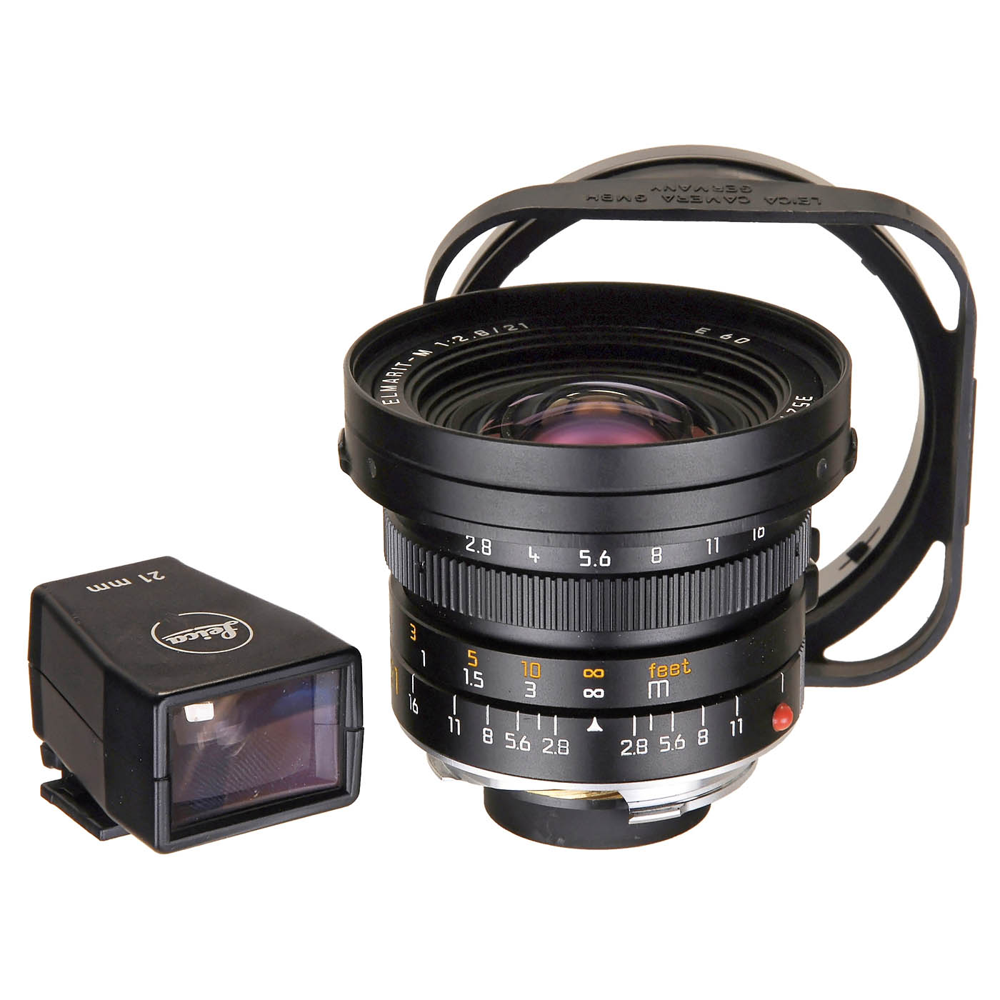 Leitz, Canada. No. 3524923 (E60), black. With lens hood, 2 caps, viewfinder 21 mm with case.