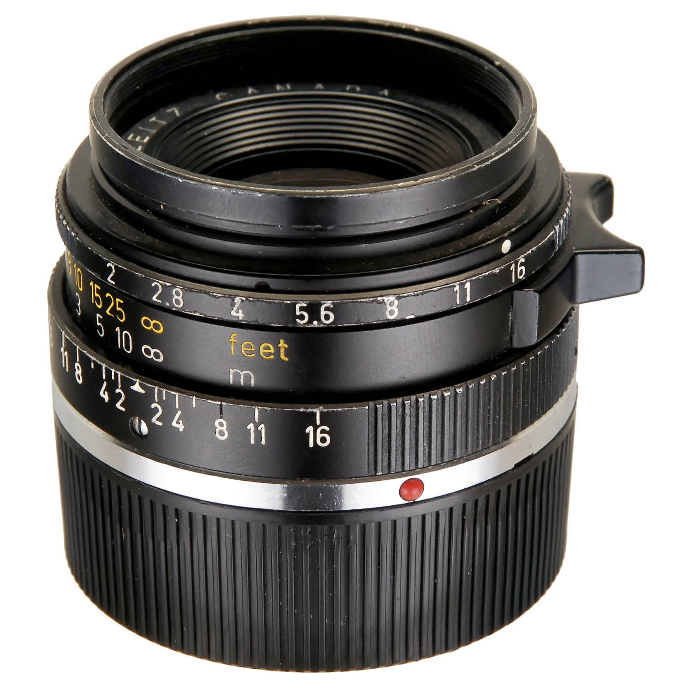Leitz, Canada. Typical third-computation lens, 6-element design and traditional aperture control ring. No serial number, possibly pre-series. With both lens caps.