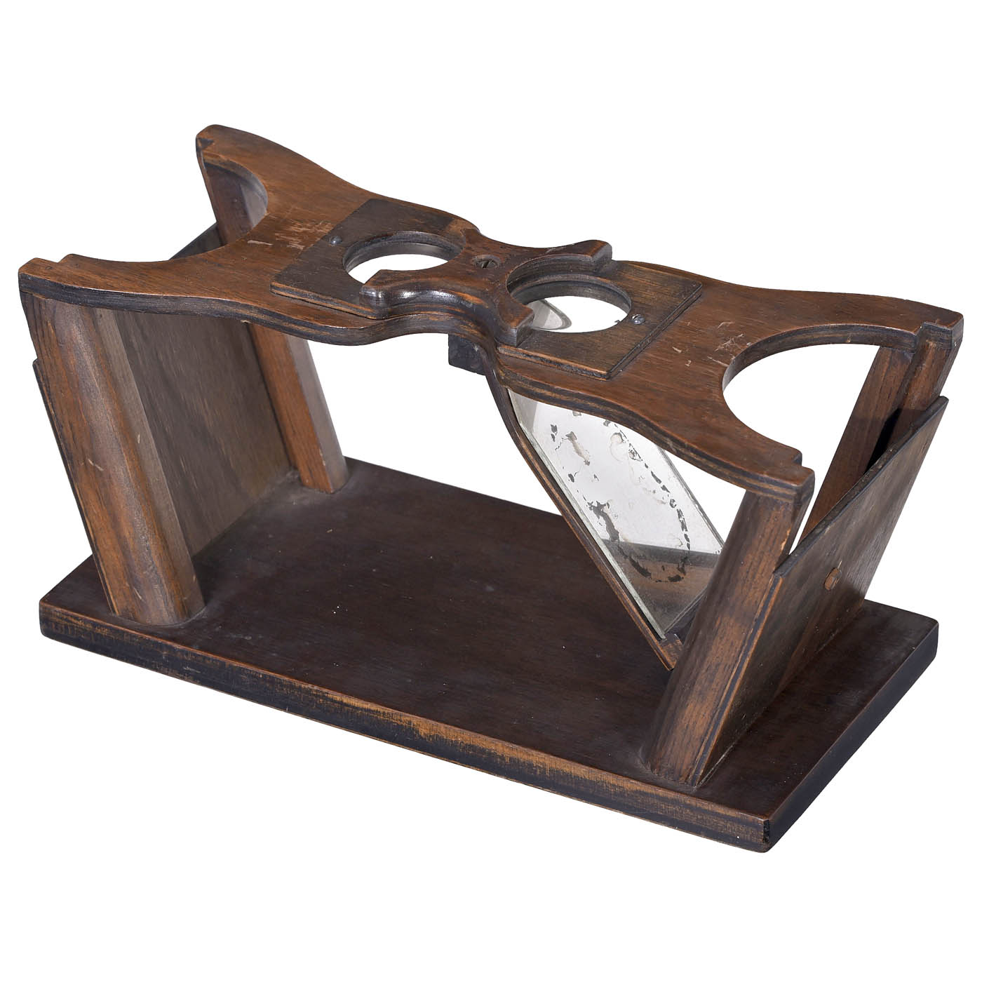 Unmarked, but with all the characteristics of a Maddox viewer, manufactured by C.W. Dixey & Son Ltd, London, all-wood construction, for 2 separate stereo views (approx. 3 ½ x 6 in.), left side with rotating and tilting mirror. - Very rare stereo viewer!