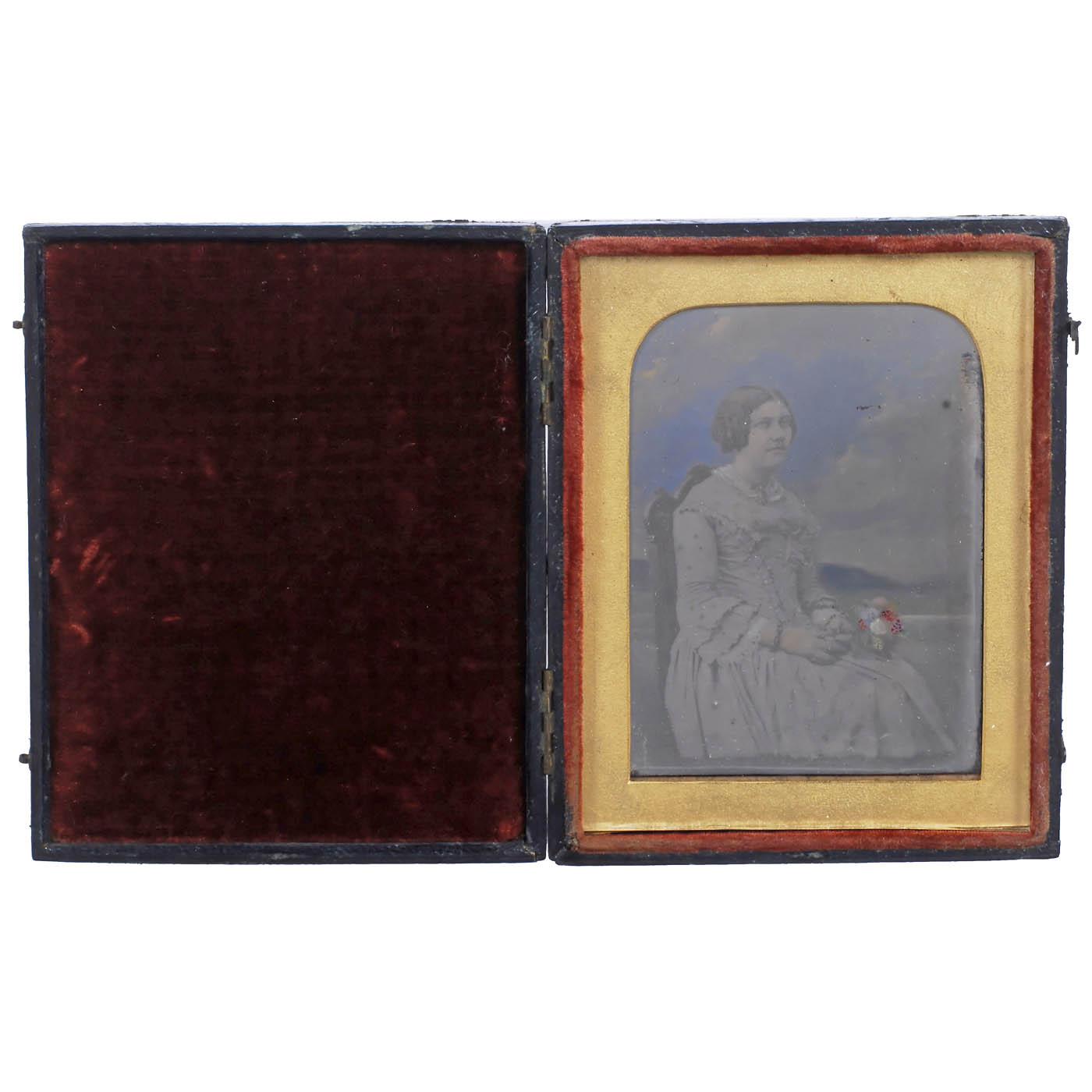 Case stamped: "Beard's Photographic Institutions, 85 King William Street London - 34 Church Street Liverpool". Excellently hand-tinted portrait of a lady, ¼ plate, brass passe-partout. Excellent illumination and contrast.