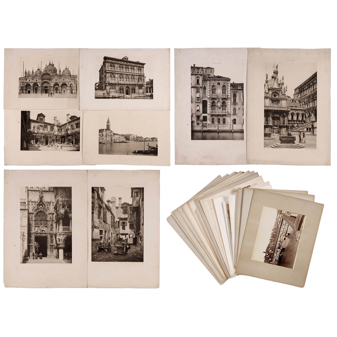 8 vintage prints of Venice, size approx. 9 x 13 1/3 in., titled. (2/-) - And: 16 assorted vintage prints of Italy, c. 1880-1900, size approx. 7 4/5 x 10 in, various publishers. (2-3/-)
