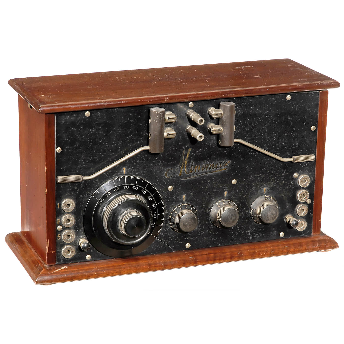 1) Siemens 21W, 3 tubes, LW and MW in one circuit, wood case, metal front, mains-operated, c. 1931. - 2) Minimax O.V.3i, Netherlands, 3 tubes, mahogany case, small crack in front, battery-operated, with 10 plug-in coils, c. 1926. - And: 3) NSF H3, Netherlands, 4 tubes, mains-operated, wood case, c. 1930.