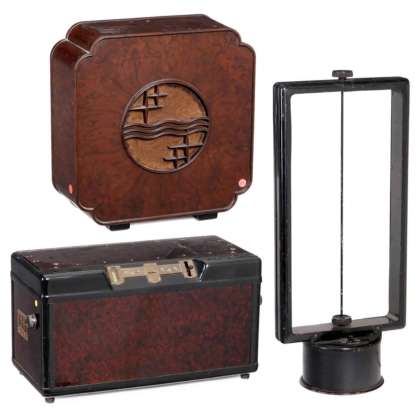 Netherlands. 1) Radio model 2511, without tubes, mains-operated. - 2) Frame arial model 4104, height 31 ½ in. - And: 3) Loudspeaker model 2123, bakelite.