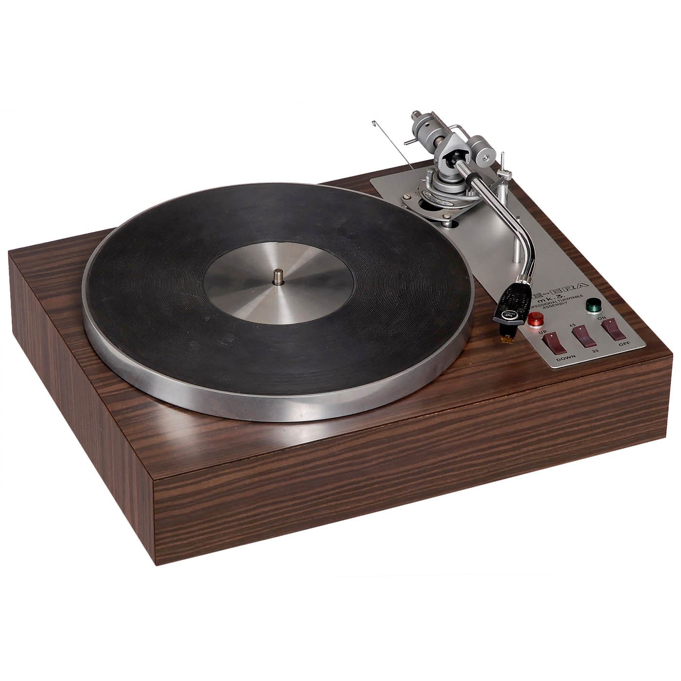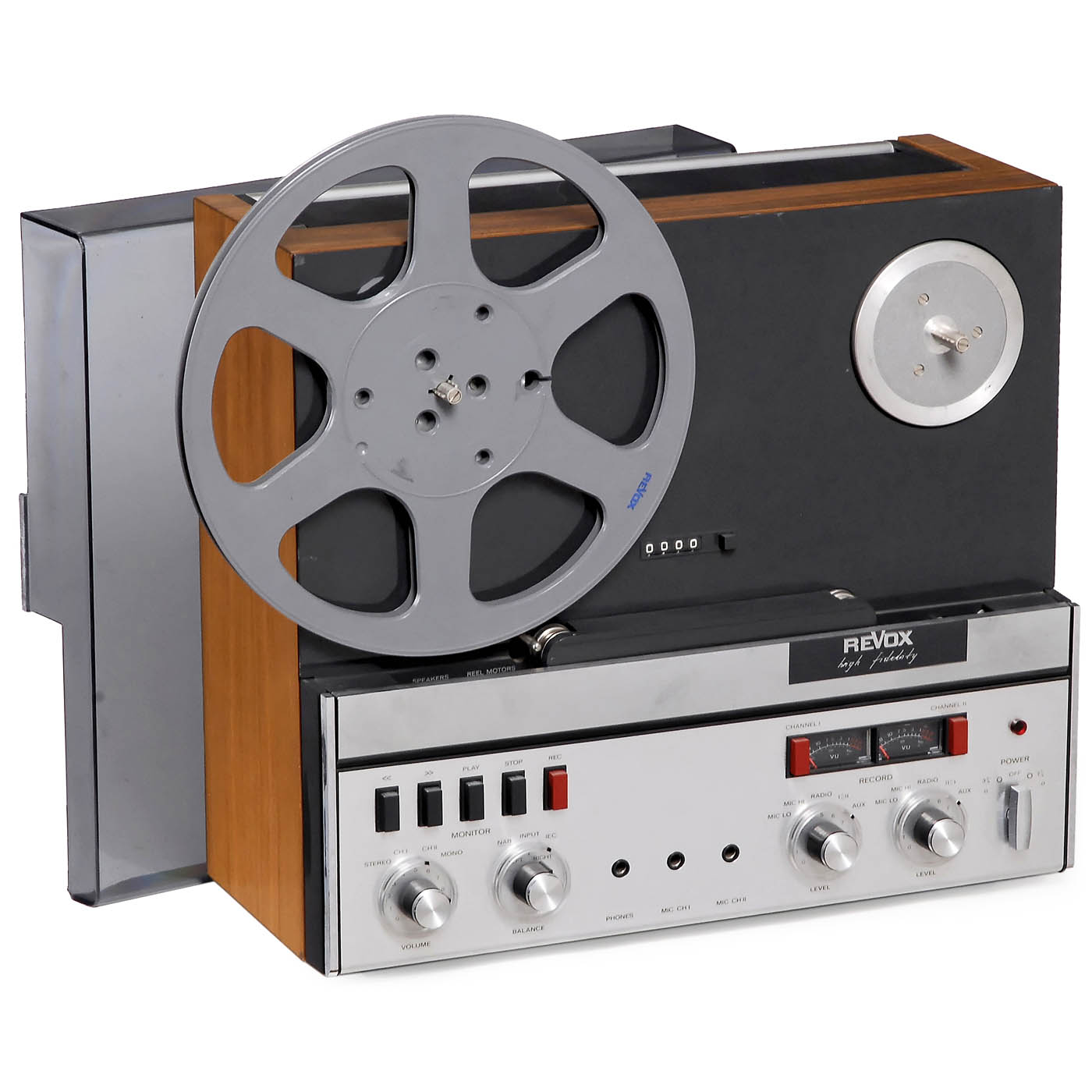 1) SME-ERA mk.3. record-player, France, c. 1970. 33 and 45 rpm, 48-pole synchronous motor, belt-driven, die-cast aluminum non-magnetic turntable, Shure SME model 3009 tone arm made in England (missing arm rest), working. - And: 2) Revox A77 tape recorder, no. 020106, Germany, 1969. 2 tracks, plastic cover with minor damage, working, with original German Revox manual.
