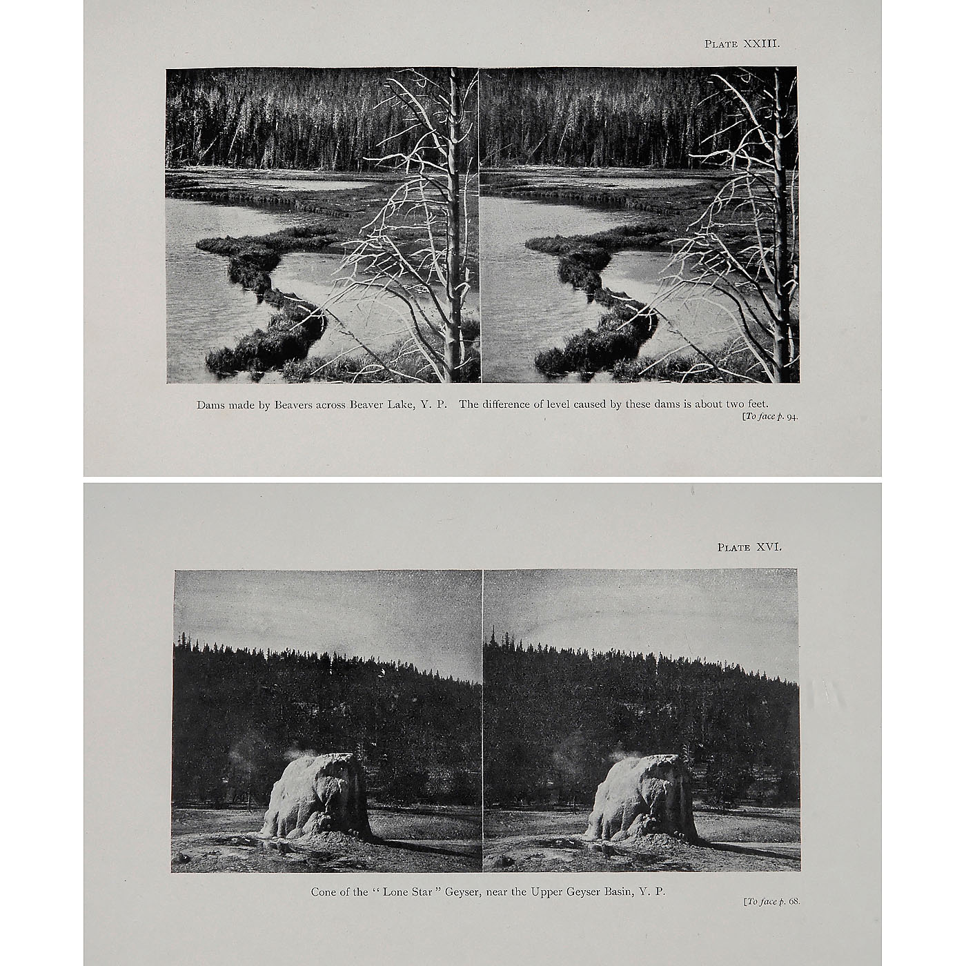 37th of 150 printed copies of a book on the journey of the English author T.C. Porter through the national parks of the USA; 241 pages, linen binding, hand-signed by the author, with 42 stereo photos of 7,5 x 15 cm format; pages only cut at the upper edge. – A rare early book of stereo photographs.