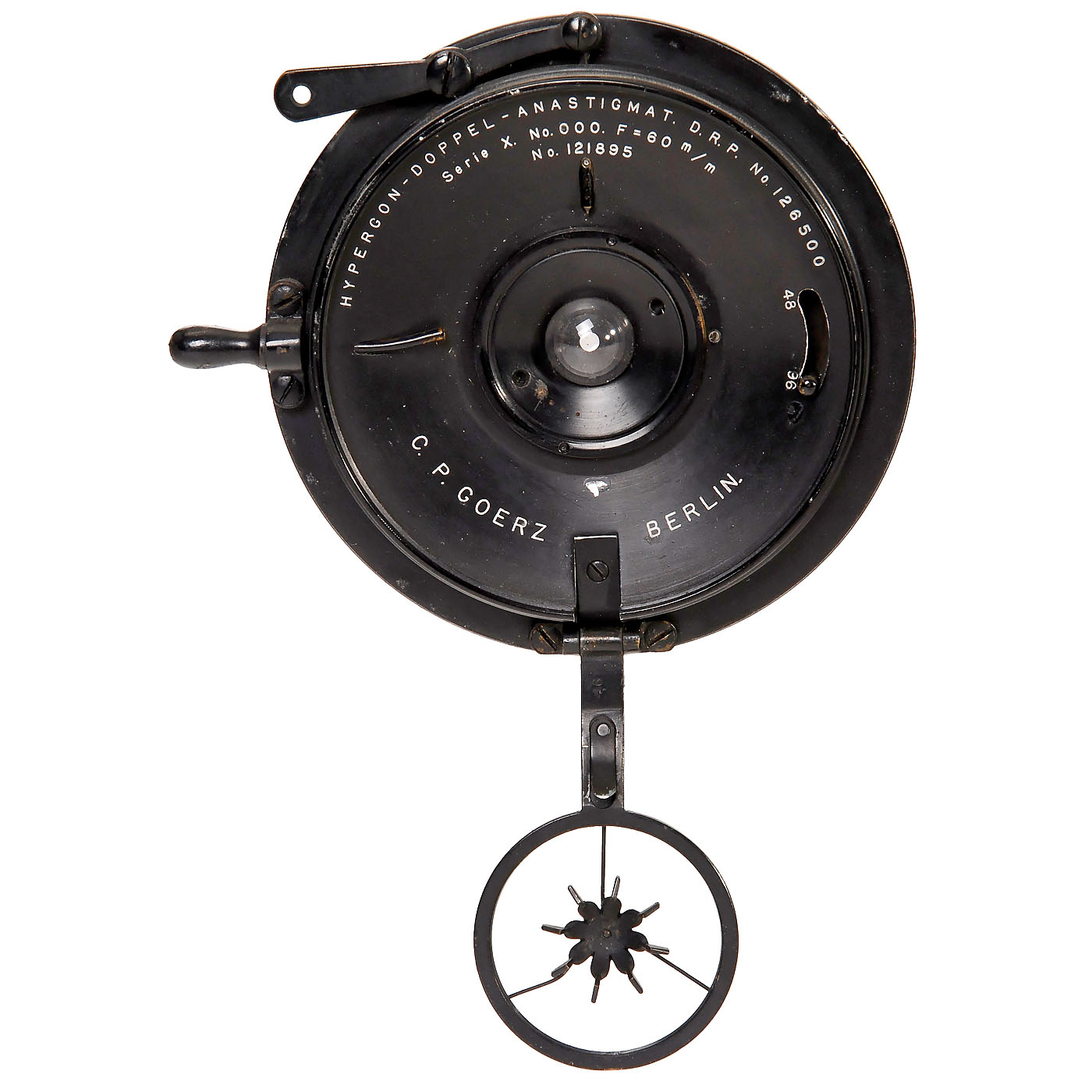 C.P. Goerz, Berlin. No. 121895, 1:48/60 mm Serie X No. 000. With rotating "propellers" in front of the lens. Extreme wide-angle lens in, excellent condition.
