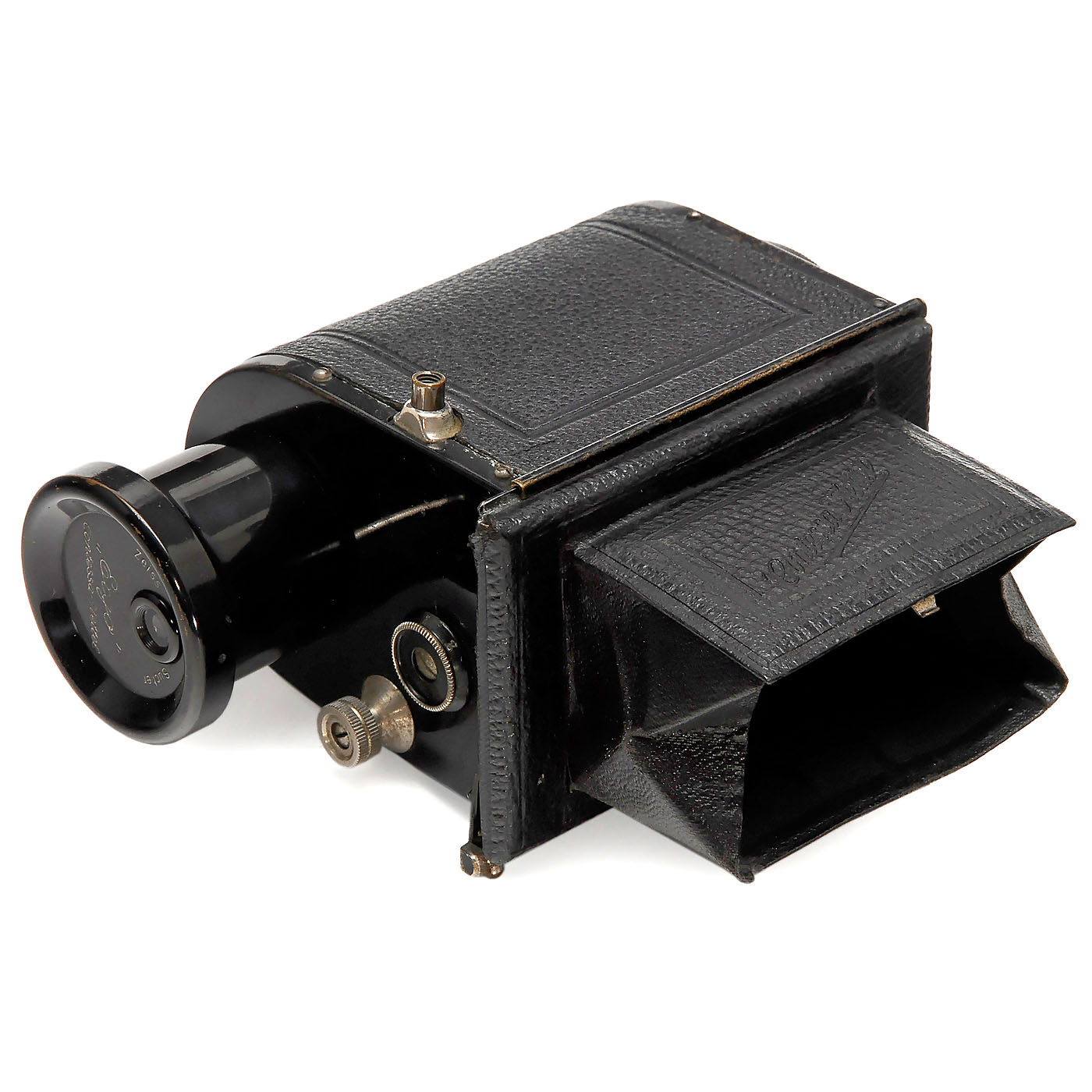 Contessa-Nettel, Stuttgart. Plate size 4,5 x 6 cm, shutter 1/25–1/100 sec., body no. 460640, Tessar 4,5/5,5 cm, no. 542261, Zeiss viewfinder, camera with film-cassette holder and case.