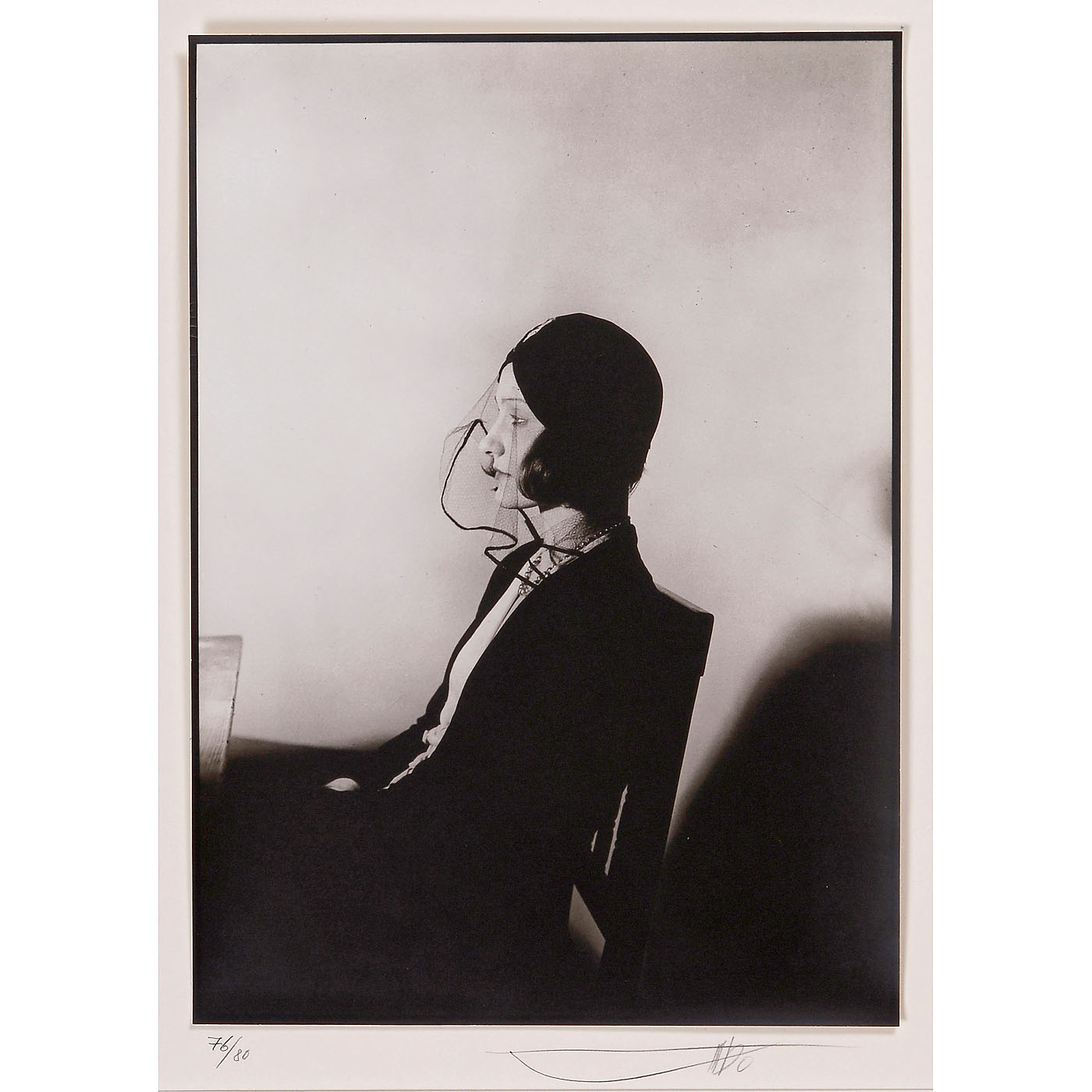 "Lady with haze", W.B. 1928. Silver print 21 x 30 cm, limited edition, no. 76/80, signed, passe-partout, modern print 1978. – Literature: "Camera" 10/76; "Photographien 1925–1933", Spectrum Galerie, p. 41.