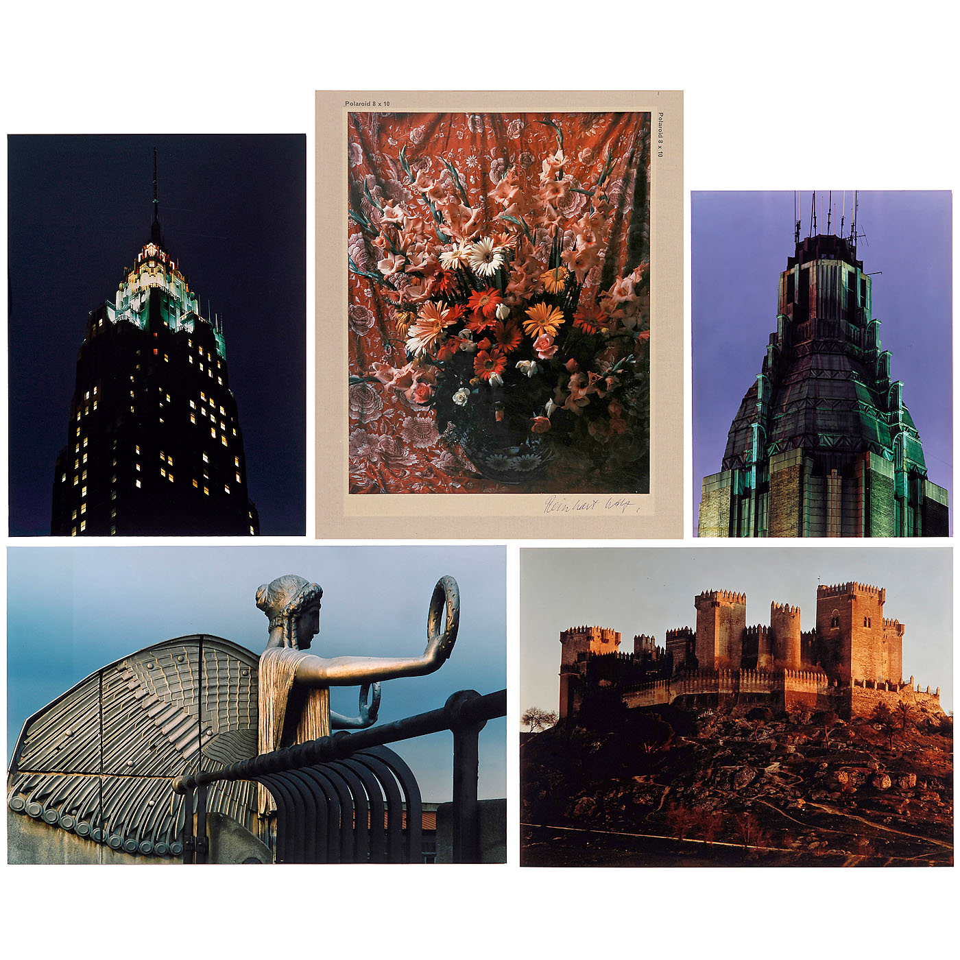 1) "Still Life", c. 1973. Polaroid print 8 x 10, size 27 x 21 cm, passe-partout, signed. Photographed in Vienna, Europhot congress. – And: 2) 4 Cibachrome prints, "Hamburger Photograph. Architectural photos", c. 1980. Sizes: 3 of 30 x 40 cm, one of 26 x 40 cm.