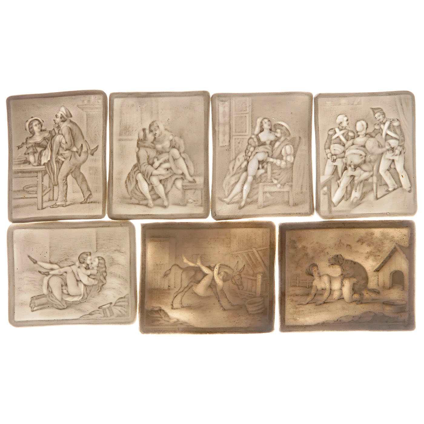 5 lithophanes of 42 x 53 mm (1 2/3 x 2 1/10 in.) and 2 lithophanes of 45 x 56 mm (1 ¾ x 2 1/5 in.) – Very rare, in good condition.