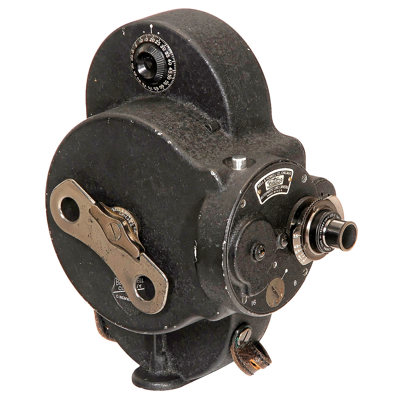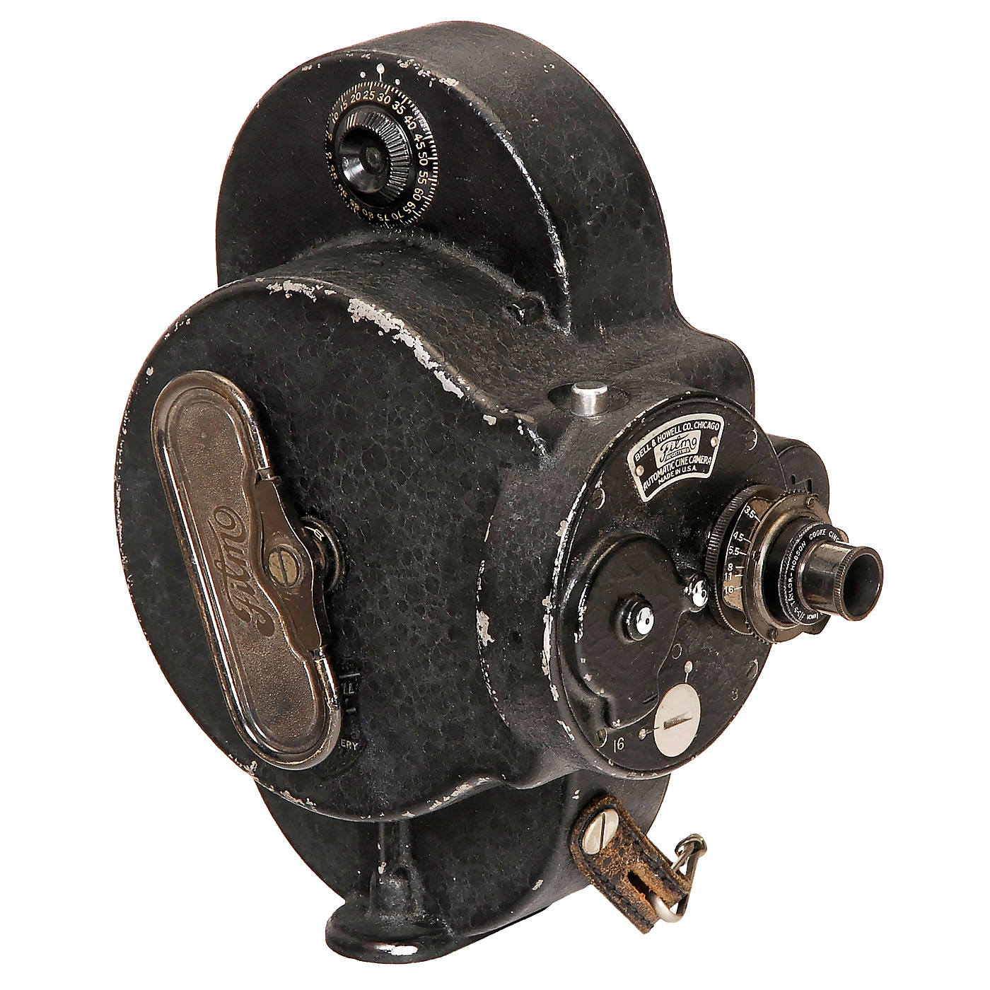 1–2) Bell & Howell, USA. 2 movie cameras "Filmo", c. 1935. Lens: Taylor-Hobson Cooke Cinema 3,5/1 in., 8/16 p/s, clockwork drive, with 1 key. – And: 3) Victor Animatograph Co., USA. "Victor Model 3", c. 1935. Lens: Wollensak Velostigmat 3,5, clockwork drive, without key. – Cameras not tested.
