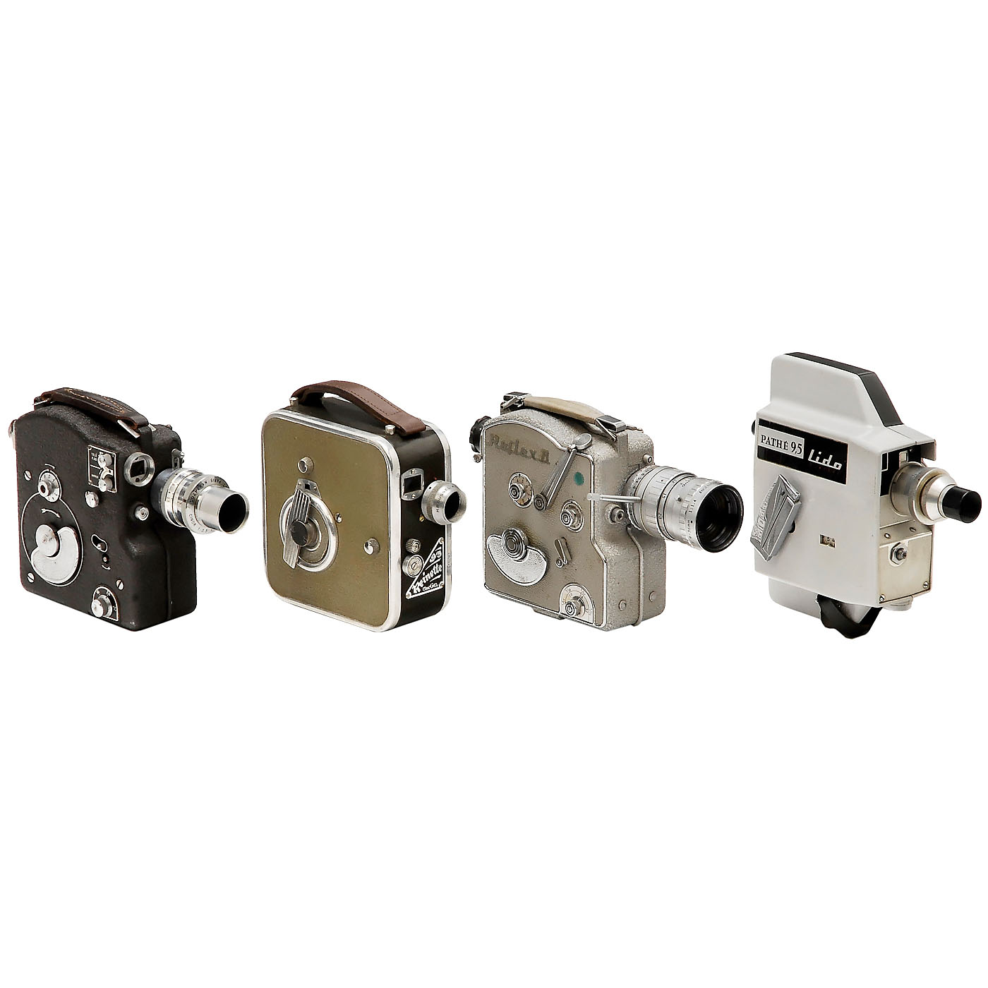Ercsam Camex 9,5 mm, Ercsam Camex Reflex 8, Pathé 9,5 Lido, Reinette 9,5. All cameras untested.