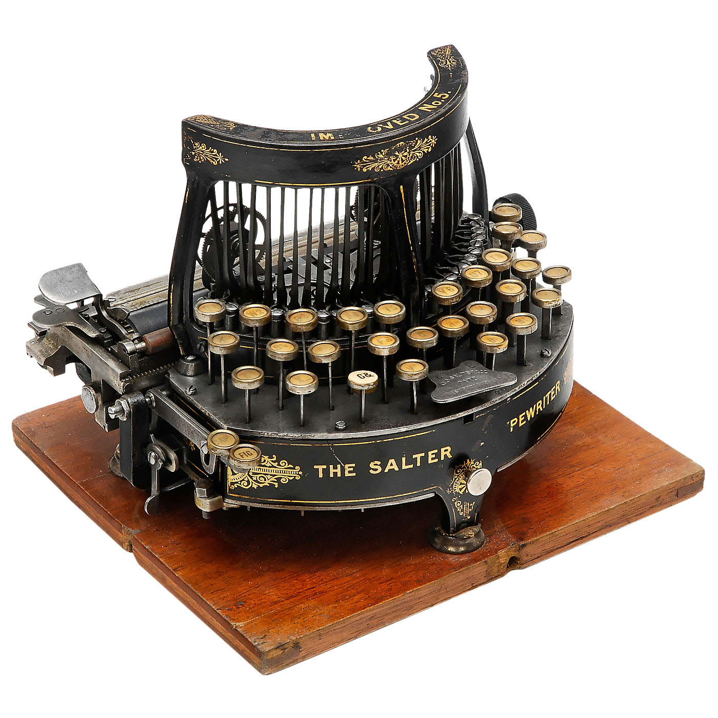 George Salter & Company, West Bromwich, England. 3-row Ideal keyboard, golden decoration, serial no. 2031. - Literature: Martin, 1949, p. 134. - Very rare and early model!