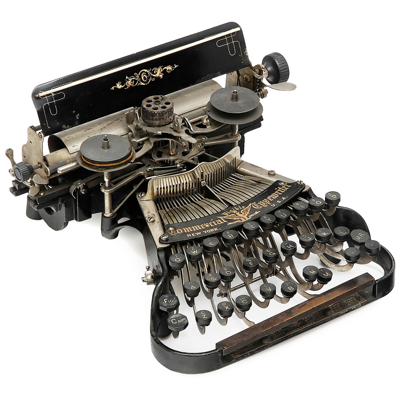 Typewheel with three rows of characters, rear mounted hammer stroke. Among the most attractive turn-of-the-century typewriters and, with its "wasp waist", one of the most feminine as well. Mechanism sticks partly, serial no. 22143. - A great collector's item!