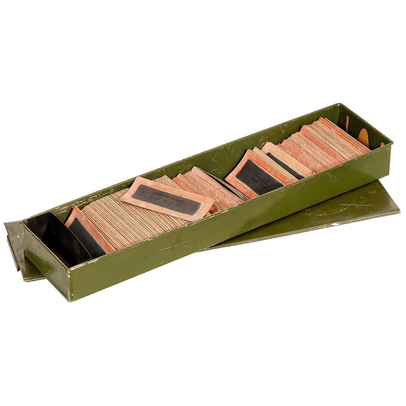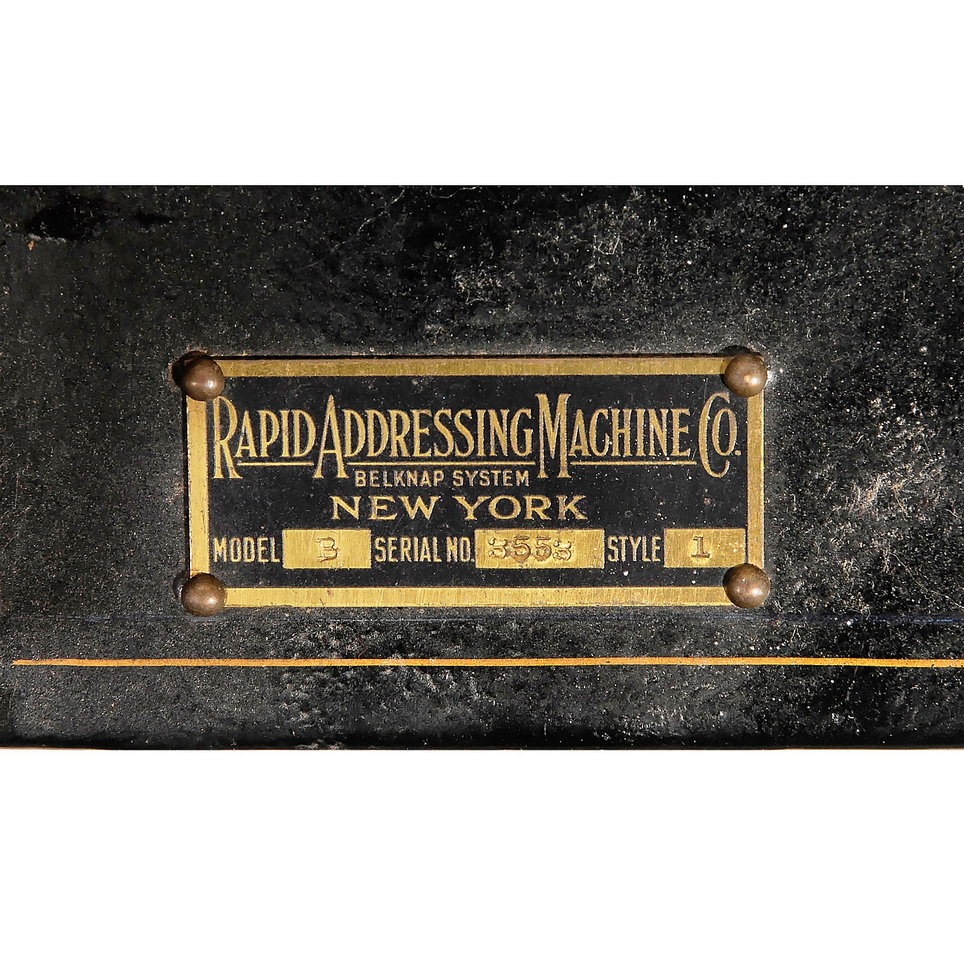 Belknap-Addressor, model B, manufacturer: Rapid Addressing Machine Co., New York. Original lacquered cast iron, hand-cranked, with approx. 200 stencils and matching stencil weight, width 29 in. - Very rare and decorative.