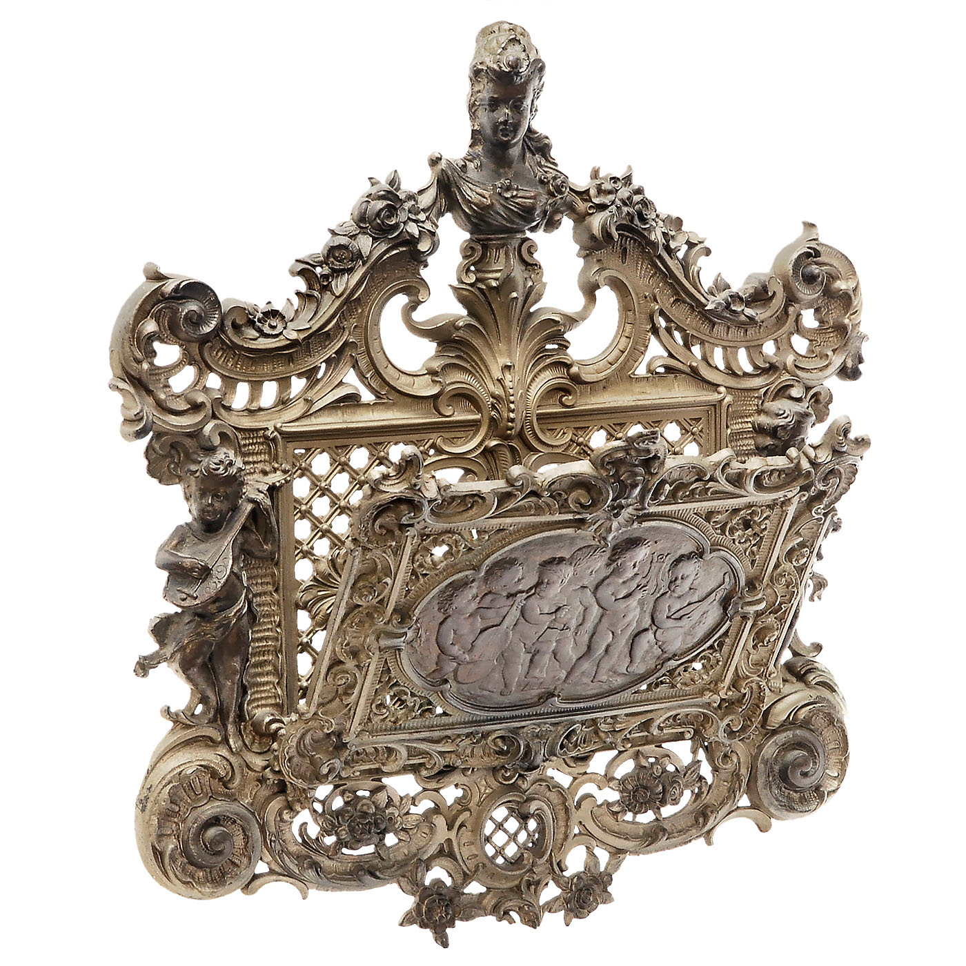 Germany, wall mount, extensively decorated with flower tendrils, blossoms and cherubs, surmounted by a female bust, size 16 ½ x 18 ¼ in.