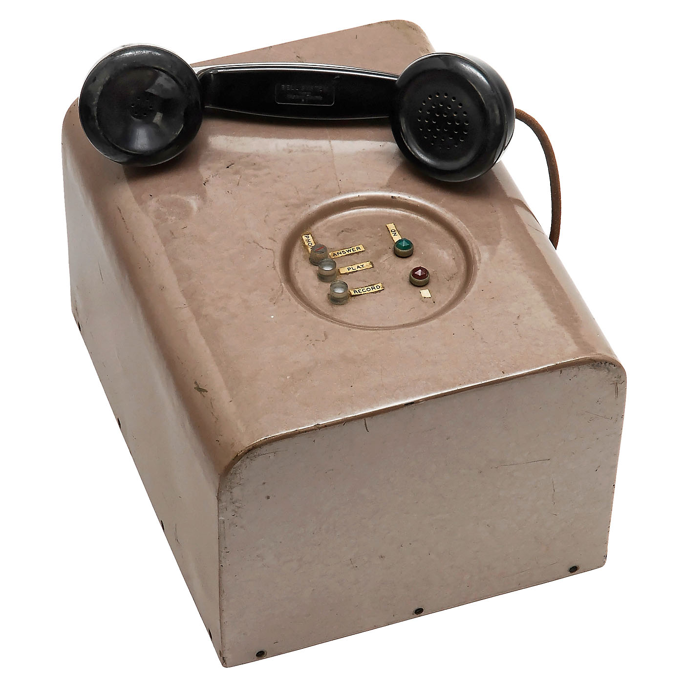 Prototype, invented by Lloyd A. Elmer, magnetic system, coated cylinder, electric motor drive, for recording and playing back.