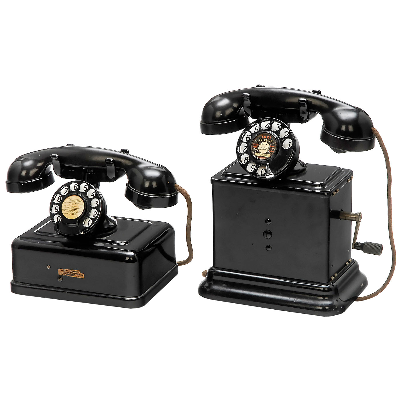 Bell Telephone Mfg. Co., Anvers. Metal cases, bakelite handsets. 1) With crank and dial, c. 1930. - And: 2) With dial, c. 1940.