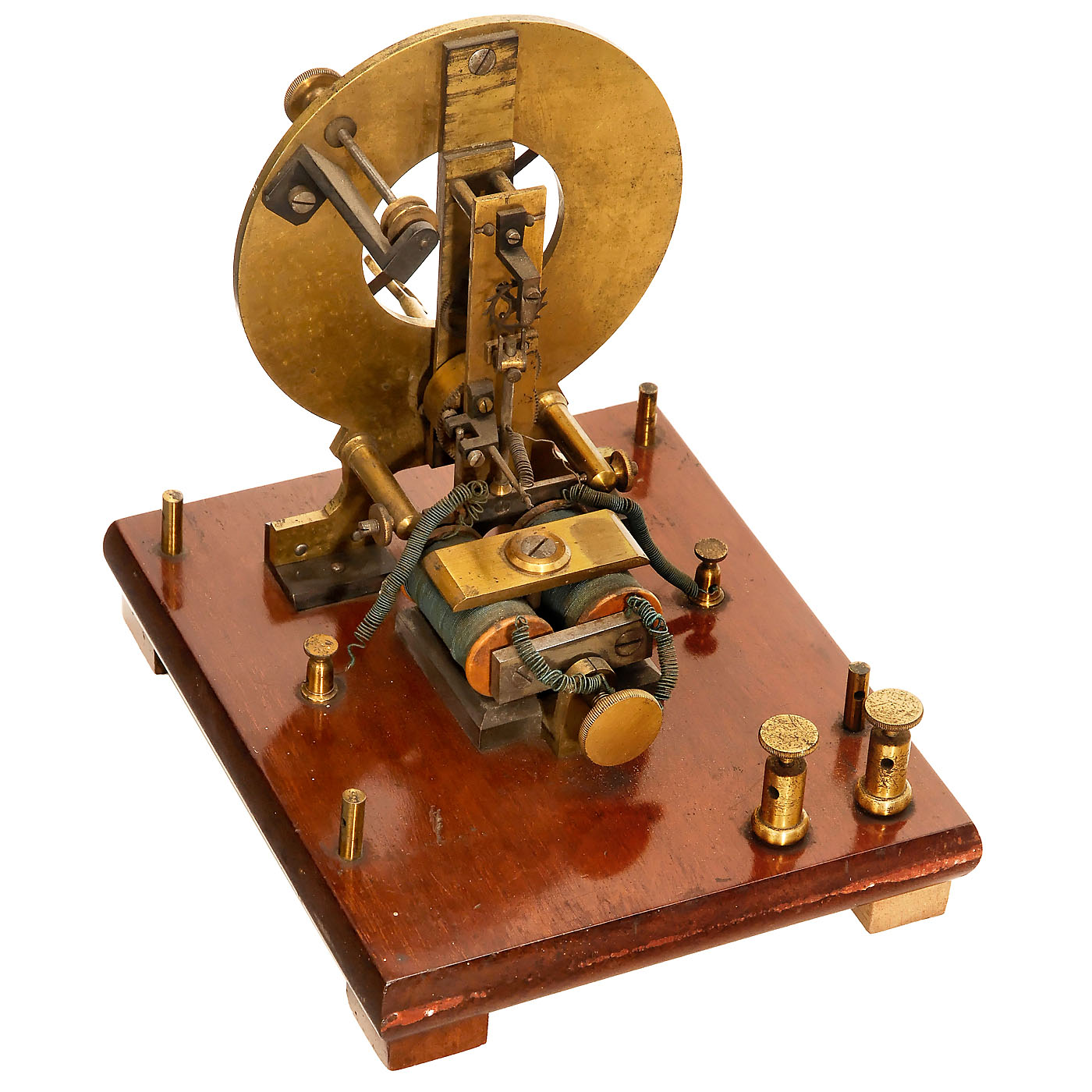 E. Ducretet et Cie à Paris. Transmitter and receiver, spring-driven receiver, brass, on polished mahogany bases, 8 x 6 7/8 in. and 7 ½ x 6 ¾ in.