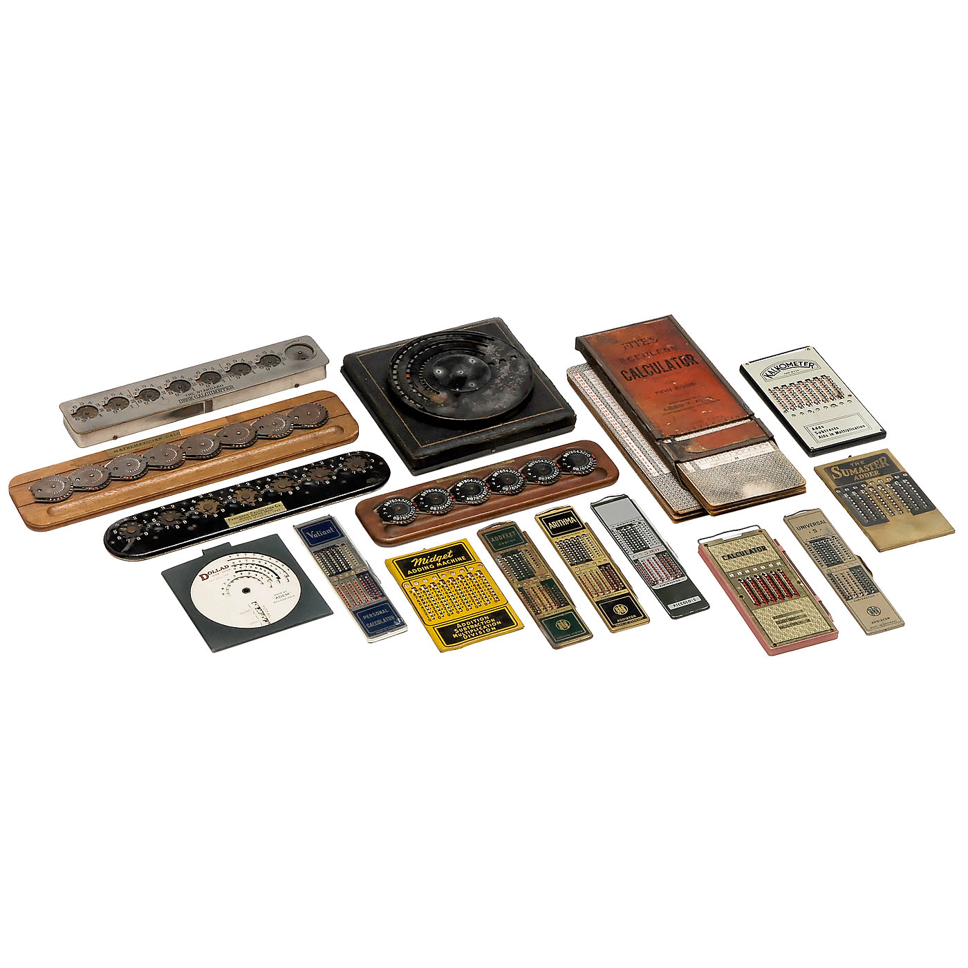 Disc and rack adders: Bair-Fulton Compilator Calculator No. 8, Bri-Cal Adder, Pangborn, Midget Adding Machine, Dolland/Adem, Arithma, Piccolo-S, Addfeet Junior, Fite's Peerless Calculator, Kalkometer, Valiant Personal Calculator, The Sumaster Adder, Calculator, Universal S, Bair-Fulton Arithmetician Calculator No. 6 and The Standard Desk Calcumeter.