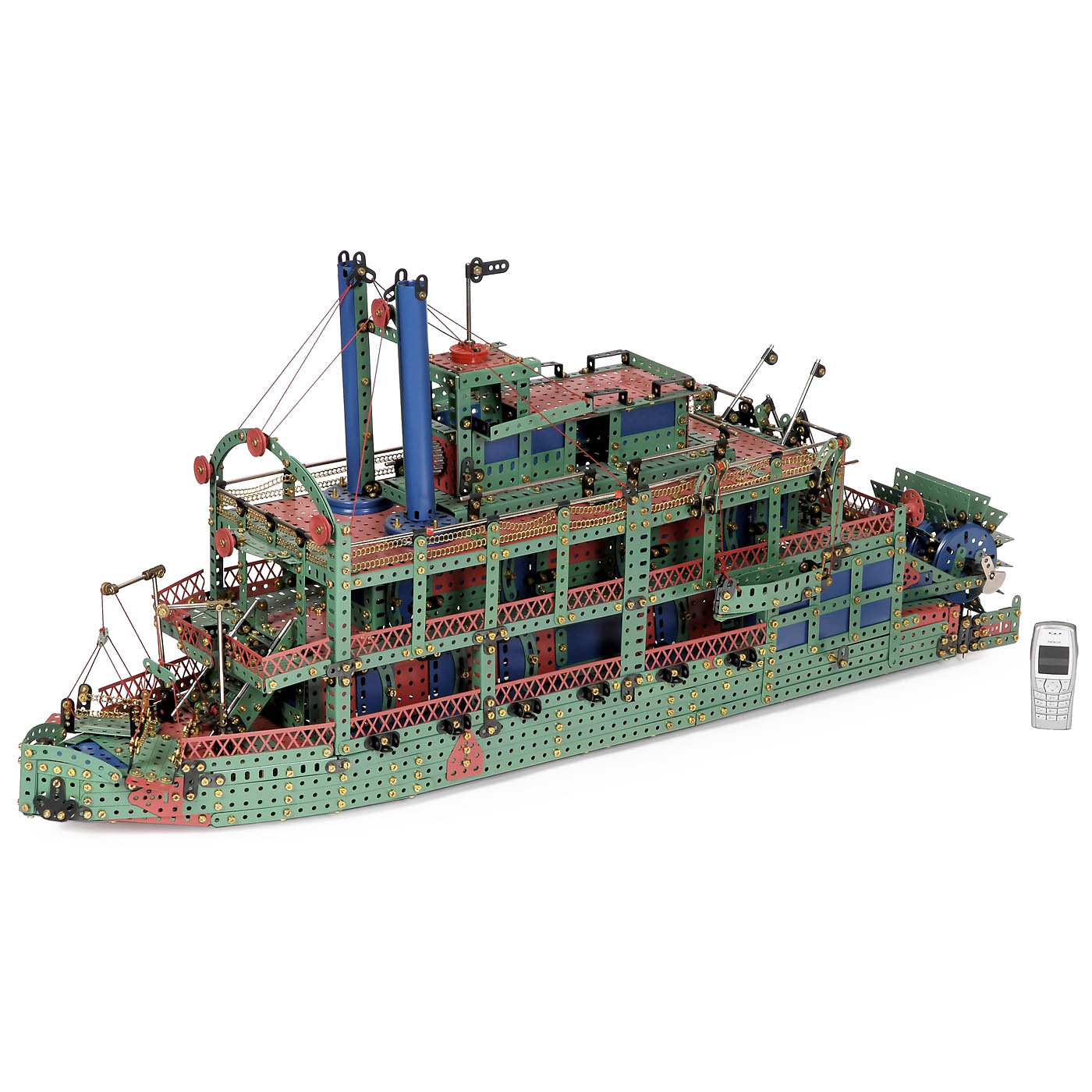 1) No. 1082, Mississippi paddle steamer, approx. 4600 parts, length 42 in. - 2) No. 1079, Do X seaplane, approx. 4700 parts, length 42 in. - 3) No. 10900, Menck M90 traction digger with caterpillar treads, approx. 4700 parts, length 39 1/3 in. - And: 4) London Tower Bridge, independent construction, length 105 in.