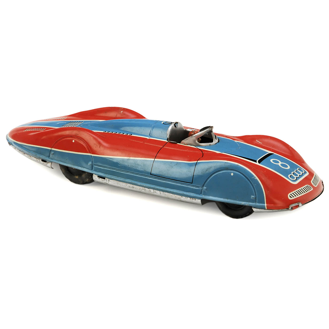 Nuremberg, no. 343, lithographed tin, friction-driven (working), length 9 ½ in., rare two-color version with pinstripes.