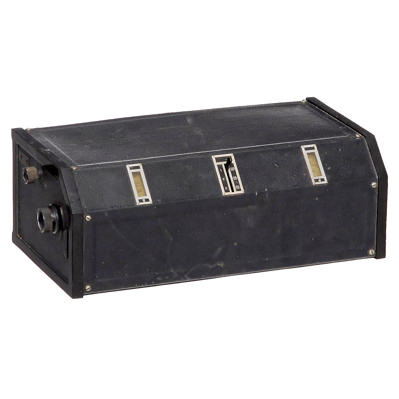 1) 2 type 2514 radio receivers, 4 tubes, broadcast and LW, line AC 115 V. - And: 2) 2 bakelite loudspeakers, one without screws to the base.