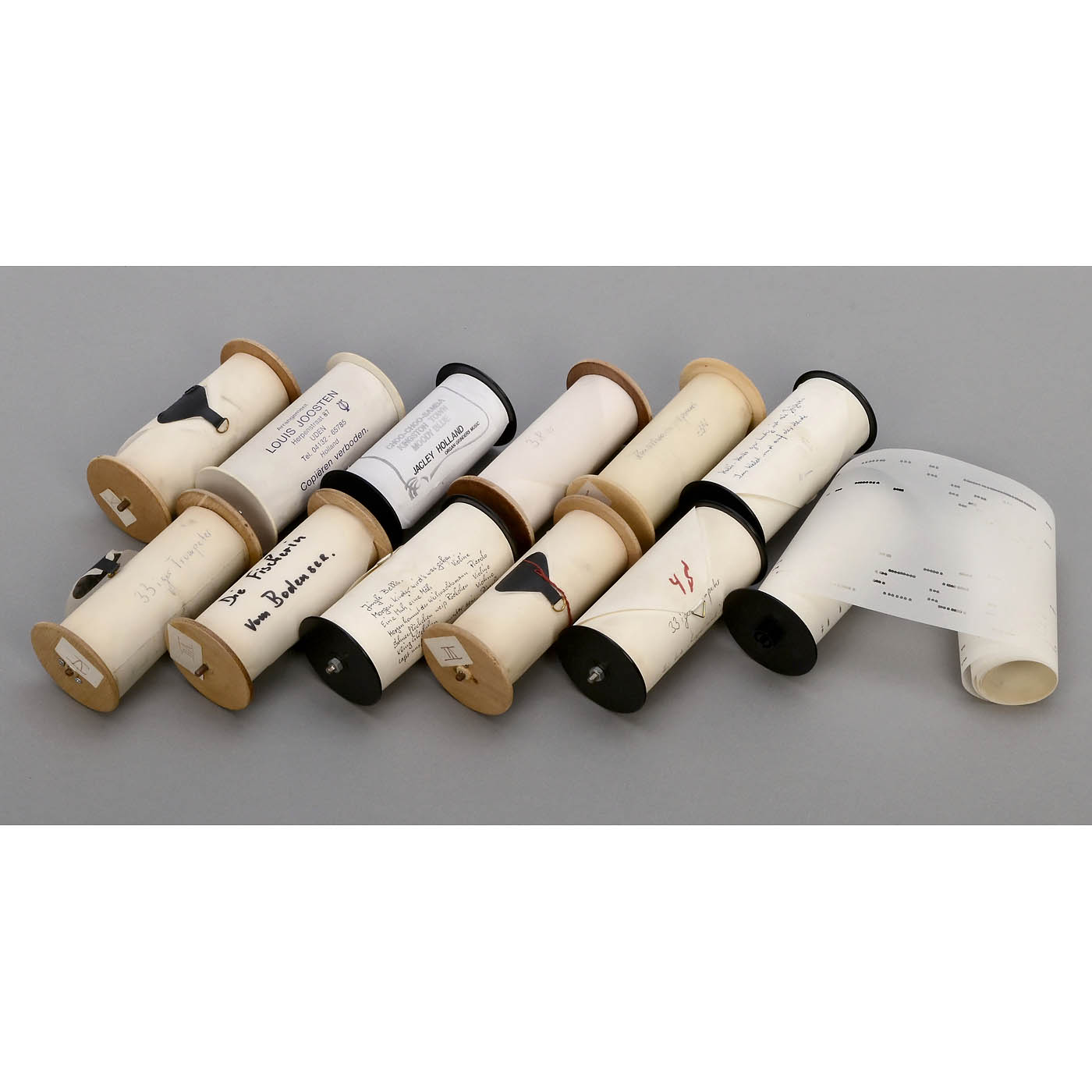 33 notes, suitable for Bruns and Hofbauer organs, 5 ½ in. wide, up to 7 titles on one roll.