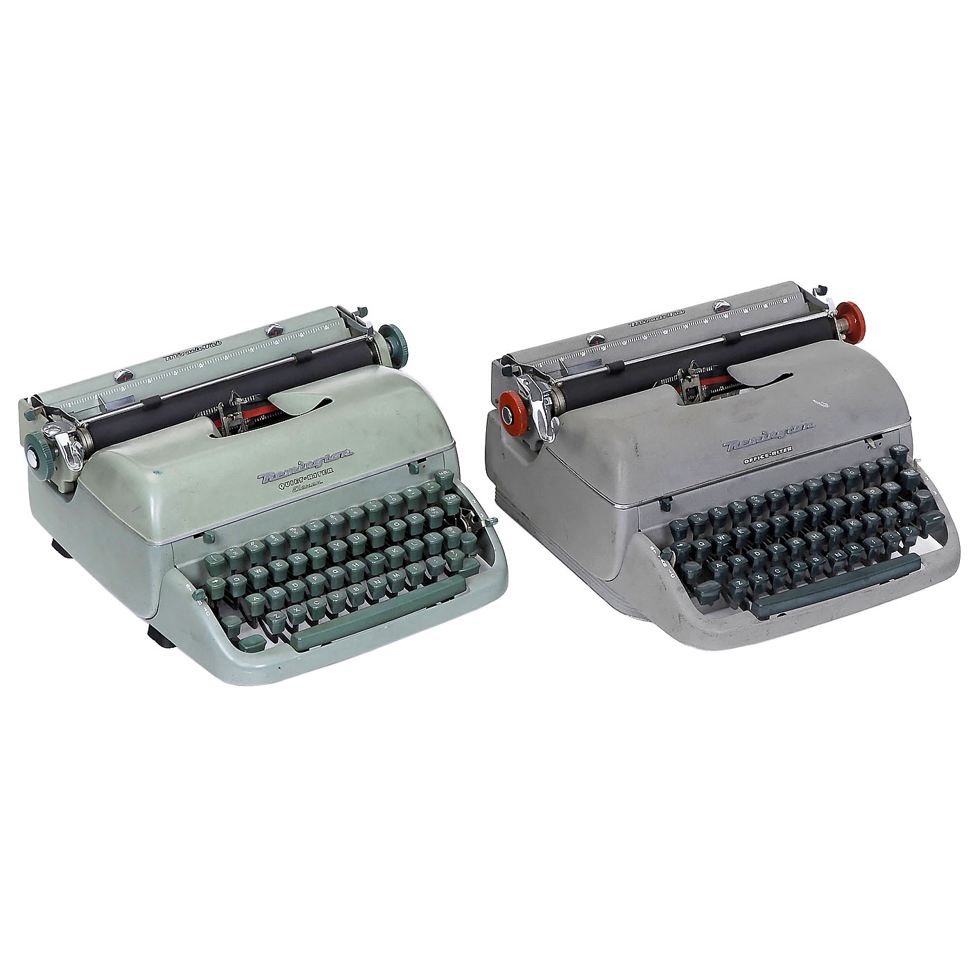 1) "Remington Portable Model 5T", c. 1935, USA. (2–3/2) – 2) "Remington Quiet-Riter Eleven", c. 1962, USA. (2–3/3–4) – 3) "Remington Office-Riter", c. 1953, USA. (2–3/2–3) – 4) "Lettera 22", c. 1955, Underwood-Plivetti, made in Italy, design by Marcello Nizzoli. (2–3/4) – 5) "Remington Letter-Riter Deluxe", c. 1958, USA. (2–3/2) – And: 6) "Torpedo", c. 1955, Remington Netherlands. (2–3/2)
