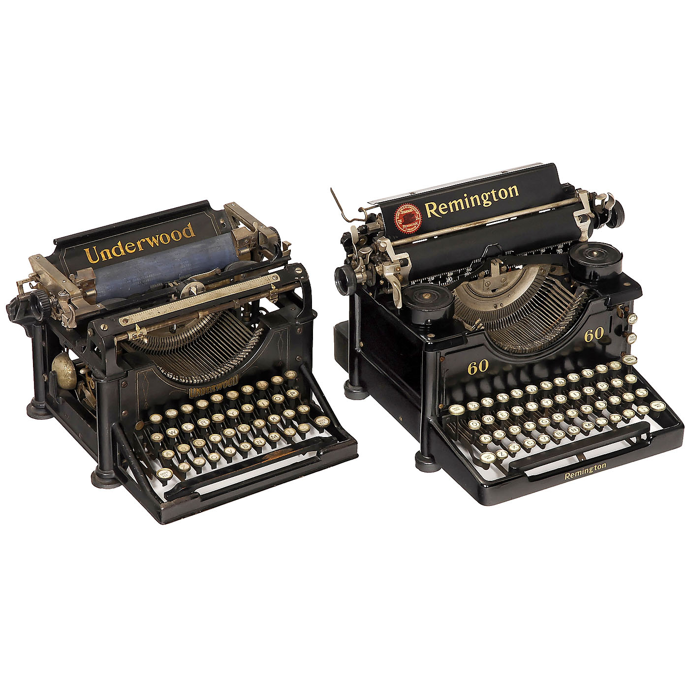 1) "Underwood No. 1", manufactured by Franz Xaver Wagner Typewriter Co., New York, serial no. 8558, 1896 onwards. – And: 2) "Remington Standard No. 60", USA, serial no. W131819, c. 1920.