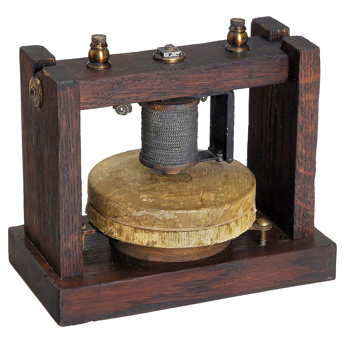 Excellent reproduction of this historic telephone, c. 1976, size 7 x 4 x 6 ¼ in. – A very interesting and instructive demonstration model.