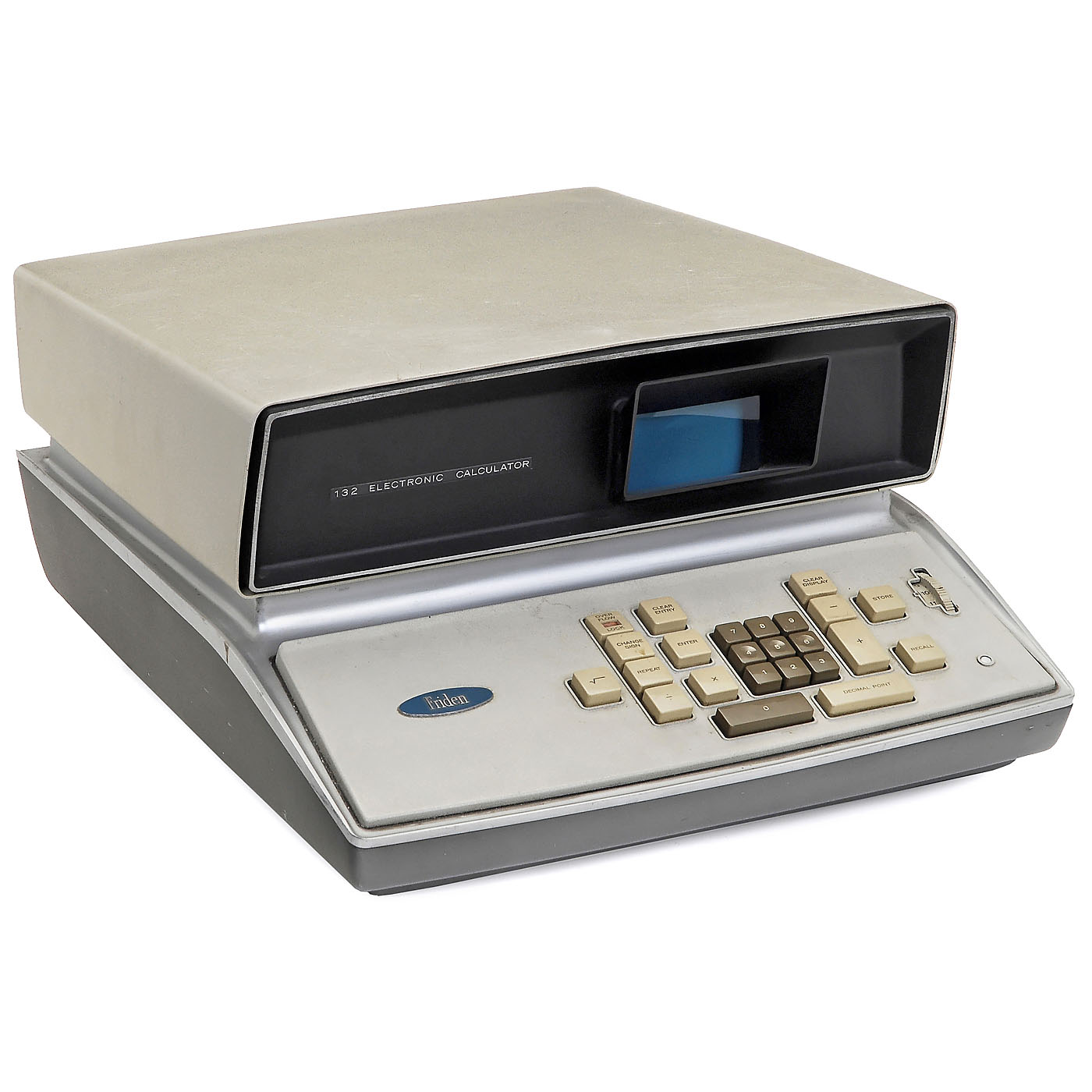 1) "Friden EC 132", 1965, successor of world's first all-transistor calculator Friden EC 130, manufactured by Friden Inc., San Leandro, California, for all four basic arithmetical operations and square-root function, result indication on cathode-ray tube display. The initial retail price was $ 2,195. – A real museum piece of the recent history of computing! – 2) "Olympia CD 400", 1970, made by Matsushita for Olympia Werke, Germany, with 12-digit Nixie-tube display. – And: 3) 2 x "Remington EDC 1201GT Lektronic", 1971, built by Casio and sold under the Sperry Rand brand name with another case, with unusual small 12-digit Nixie-tube display. – All untested.