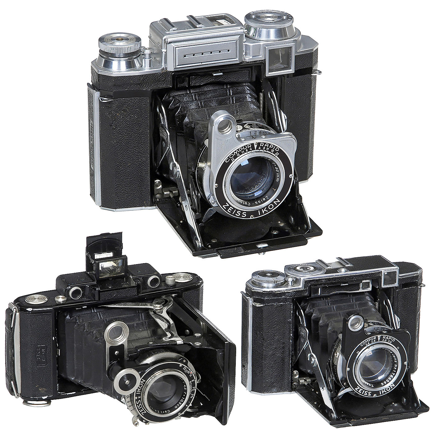 Zeiss Ikon, Stuttgart. No. P5478*, with Opton-Tessar 2,8/80 mm, no. 27000, unusual and interesting number (East meets West), Compur-Rapid, viewfinder glass loose, light meter inoperative. – In addition: Super Ikonta 530/2 and Super Ikonta 530/16.