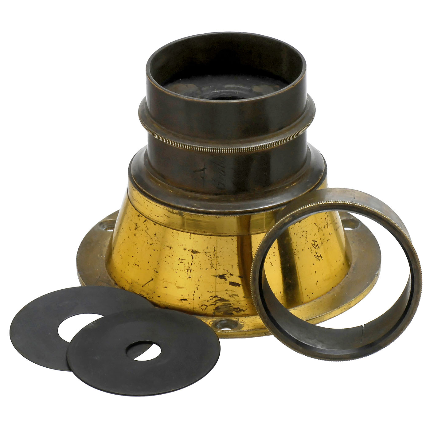 No. 2175, rigid version, with 2 washer stops, approx. 8 cm focal length, front element Ø ¾ in., height 1 ¾ in., with connecting ring Ø 2 1/3 in.