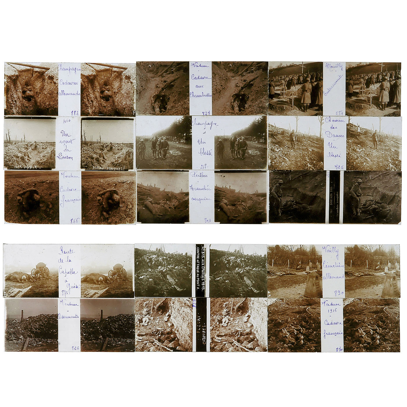 Wood box with stereo viewer and 200 slides of 45 x 107 mm, nearly all inscribed, from the property of the prolific French painter Paul Joseph Alizard (1867–1948), son of Antoine-Julien Alizard. Paul was honored as a chevalier de la Légion d'honneur in 1926. Remarkable are 40 slides from World War I, serving as templates and inspiration for striking war paintings, and 37 slides showing the casualties of war from a brutally critical standpoint. Some images not shown. In addition: 36 more slides from World War I, 47 from journeys in Europe, Asia and Africa, 25 erotic images and 15 slides from the funeral of Marechal Foch 1929. All in good condition.