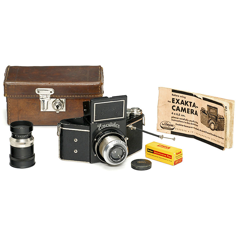 Ihagee, Dresden, 4x6.5 cm on 127 rollfilm, Tessar 3.5/7.5 cm, no.19021597, Tele Megor 5.5/15 cm, 箱子,英语说明书,柯达胶卷 Type VP127. 快门粘瑟,但其是一件出色的展品。