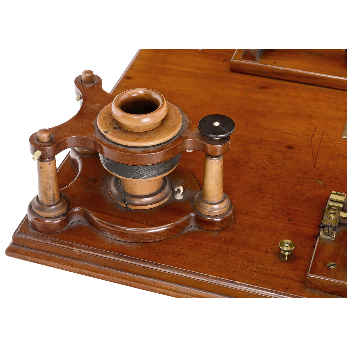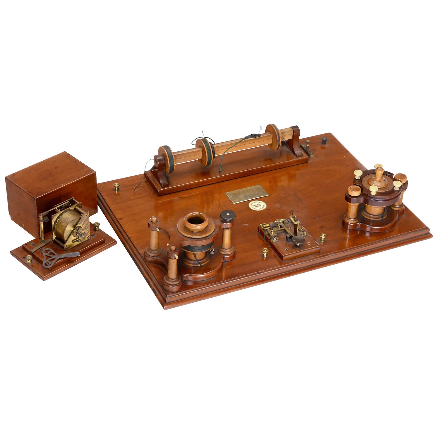 Laboratory instrument, made by W. Groves, London. With inscription on brass plaque "Given to Heath Grammar School from the Laboratory at Moorside, Halifax, in memory of Louis John Crossley by his Wife, September 1891". - With typed description from 1904: