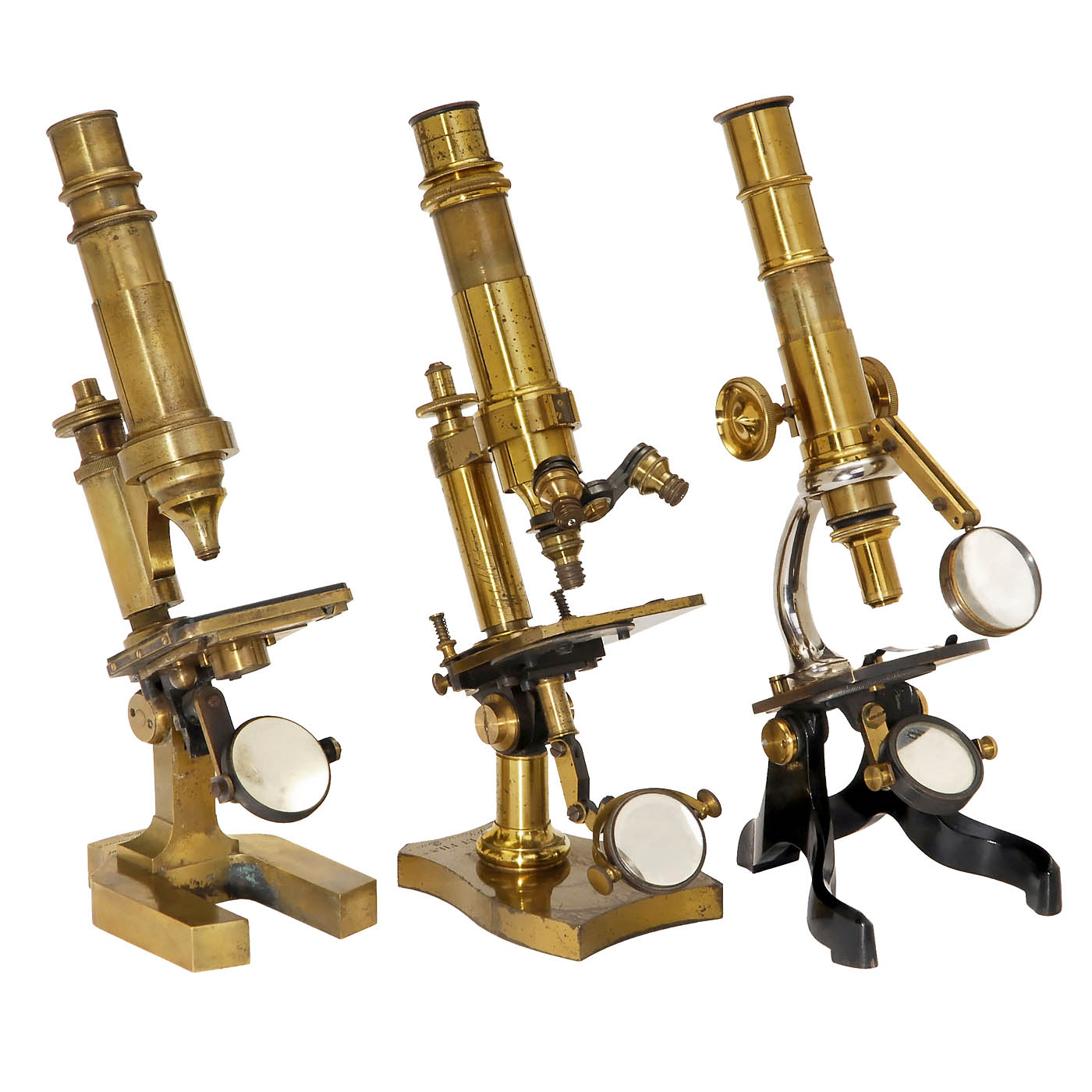 3 French Brass Microscopes