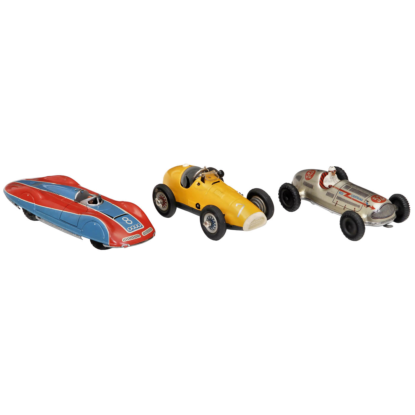 3 German Tin-Toy Racing Cars, c. 1950-60