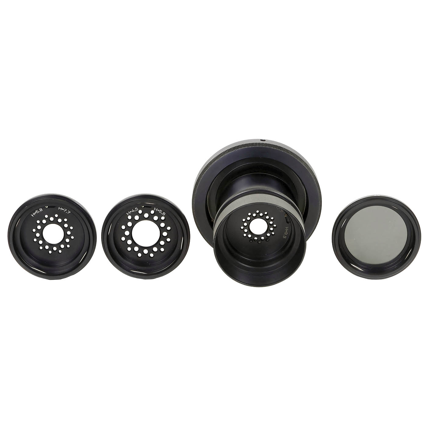 Franke & Heidecke, Braunschweig. 1) Rolleiflex SL66, no. 2921542, with Planar 2,8/80 mm, no. 8079677, magazine and waist-level viewfinder. Leather covering on some parts in need of refixing. (3/3) - 2) Sonnar 4/150 mm, no. 8081502. (2-/2-) - 3) Rodenstock Imagon 4,5/120 mm, no. 10610694, with SL66 adapter, 3 special stops and grey filter in box, with instructions. (2-/2-) - 4) 3 magazines. (3/-) - And: 5) Unusual professional sunshade "PROFECTOMAT", USA, for plane filters of 10 x 10 cm.