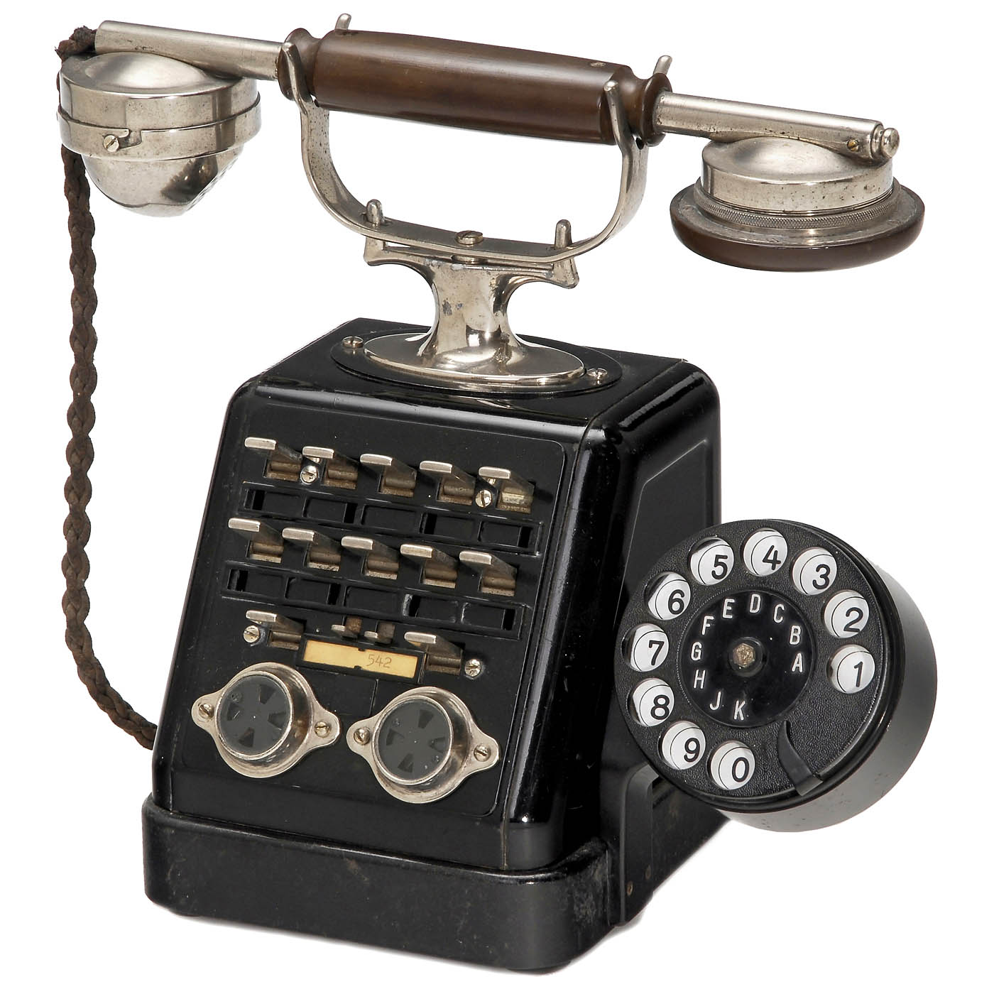 Metal case, 10 line switches, 2 indicators, lateral dial, handset with hygiene microphone.