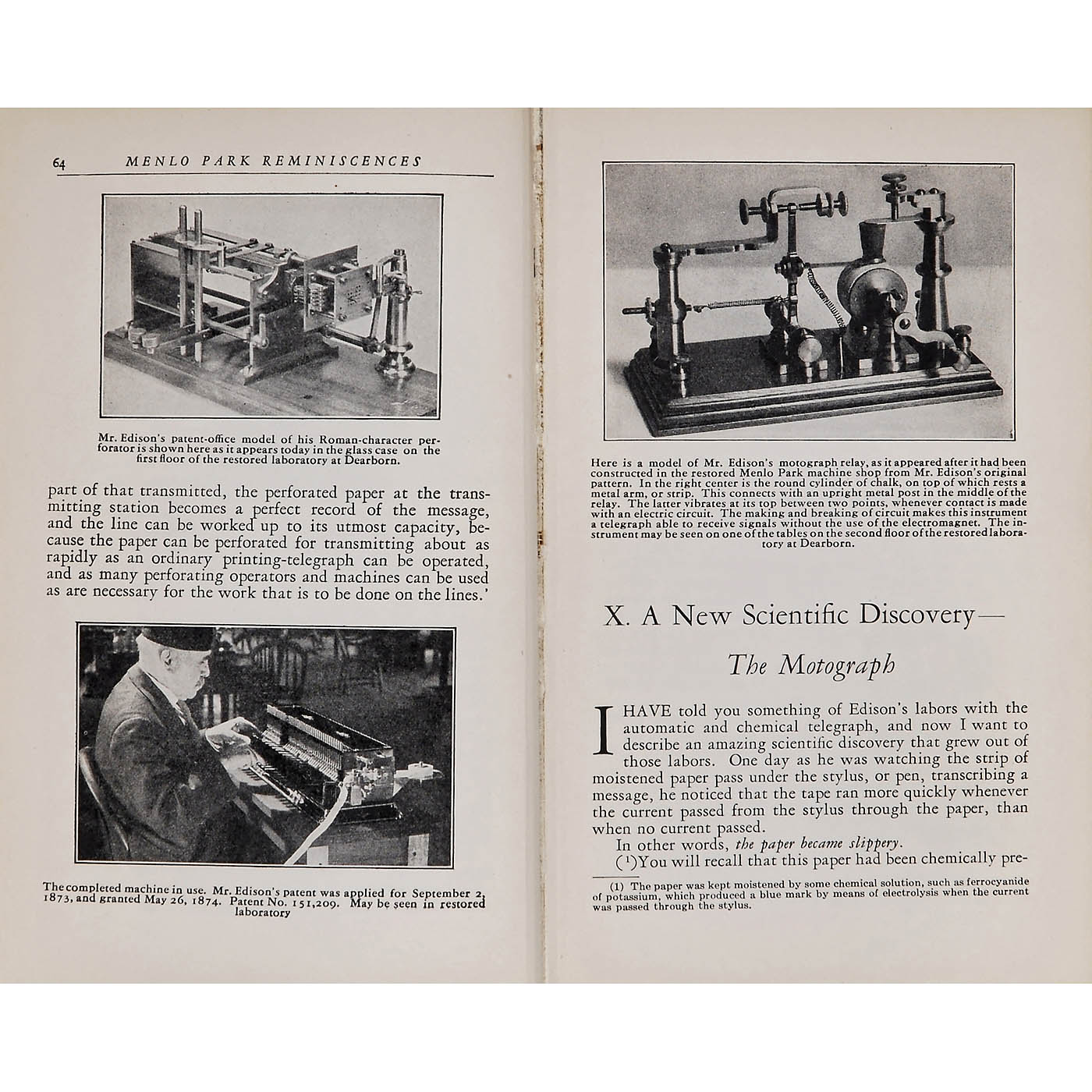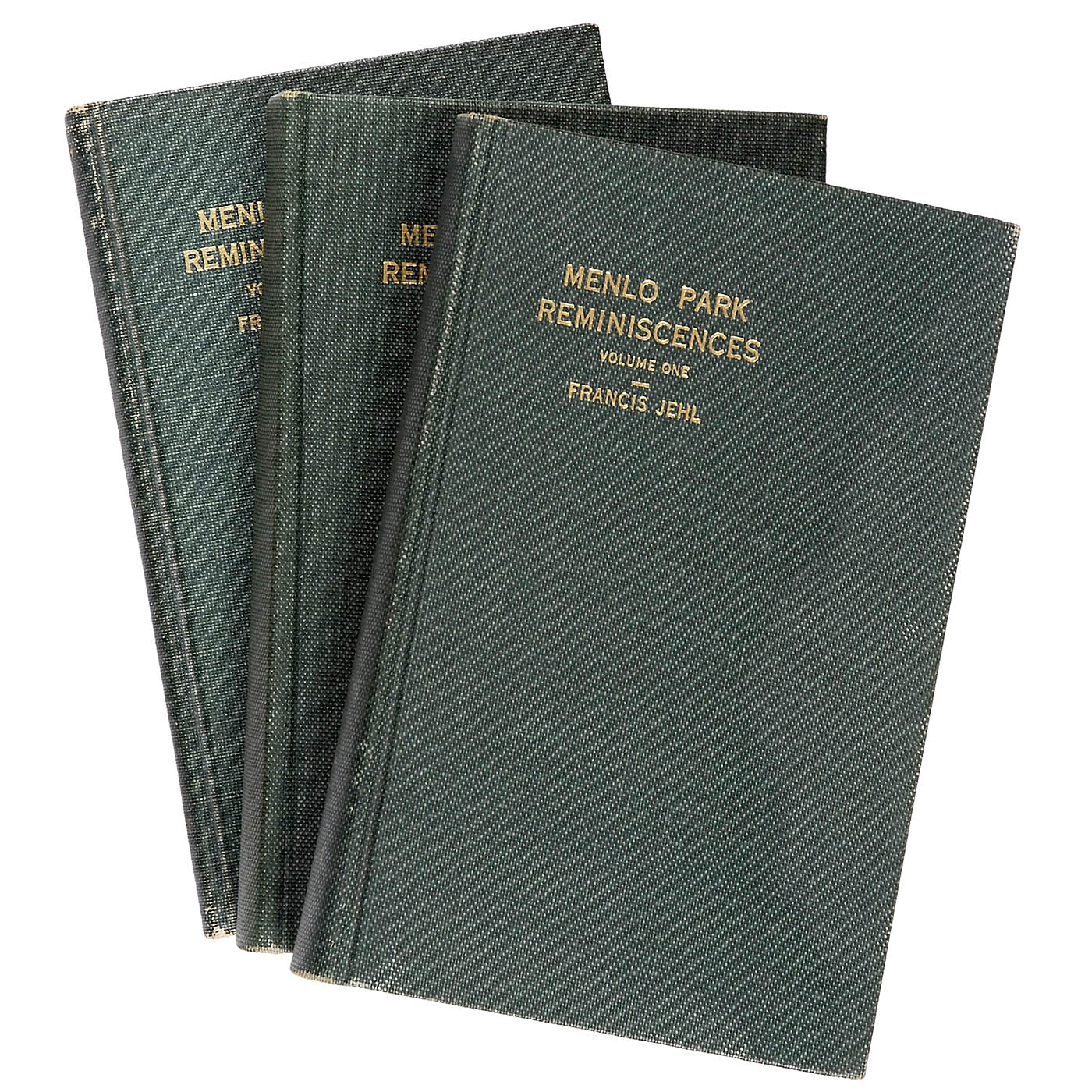 Author: Francis Jehl, staff laboratory assistant of Thomas Alva Edison at Menlo Park, published by Edison Institute Dearborn, Michigan, volumes 1-3, 2nd edition 1937, 1156 pages and index section, professionally illustrated, hard linen cover. Volumes 1 and 2 deal with the work in Menlo Park, volume 3 describes the electrification of New York.
