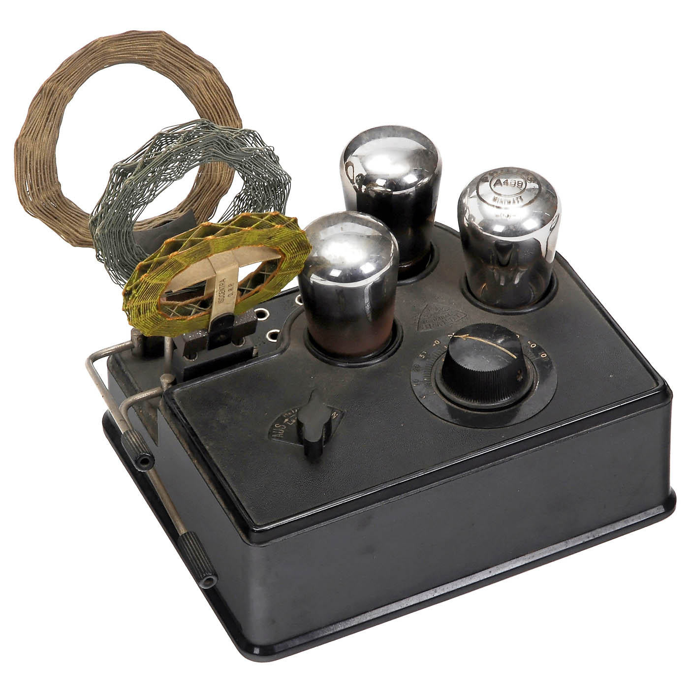 Roland Brandt, Berlin. 3 tubes (Re 034, Re 084 and A 408), for battery and external loudspeaker, triple-coil coupler, medium wave and long wave, bakelite case, 3 resistors and 1 condensor replaced.