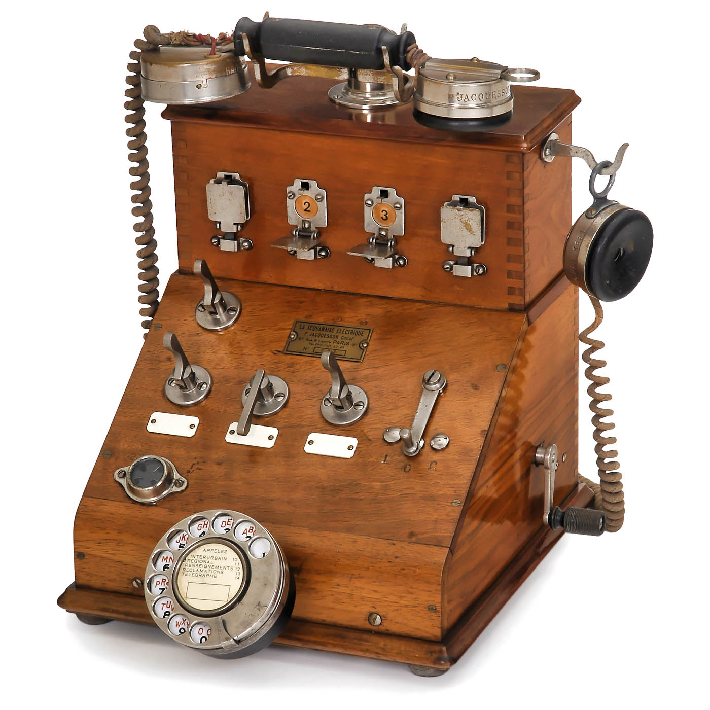 La Séquanaise Électrique P. Jacquesson, Paris. No. 292, walnut case, 4 flaps, dial, original handset and additional earphone, crank inductor.