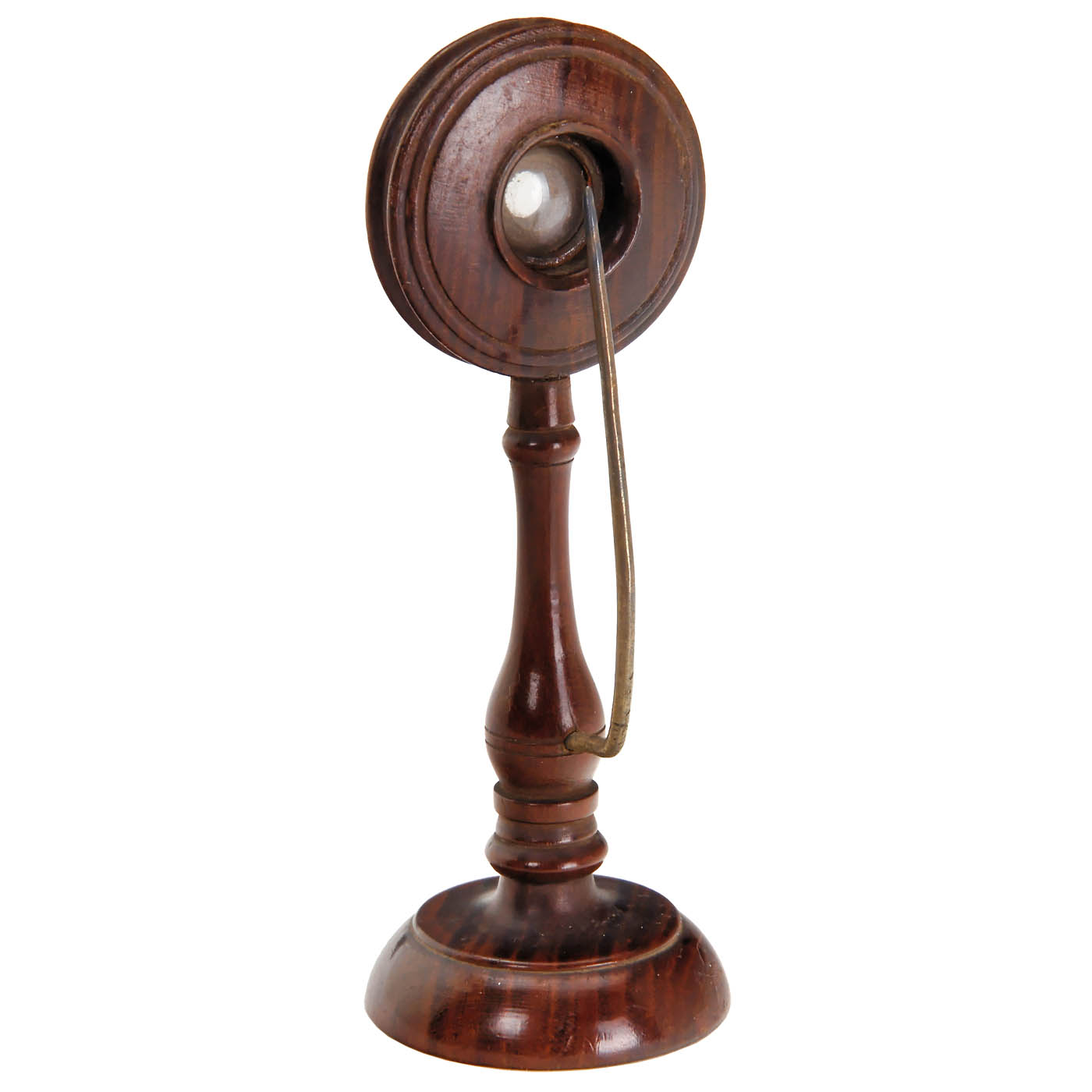 Turned fruitwood base, spring-mounted inset single-lens, Ø 1/3 in., sprung sample-holder, height only 3 ½ in.
