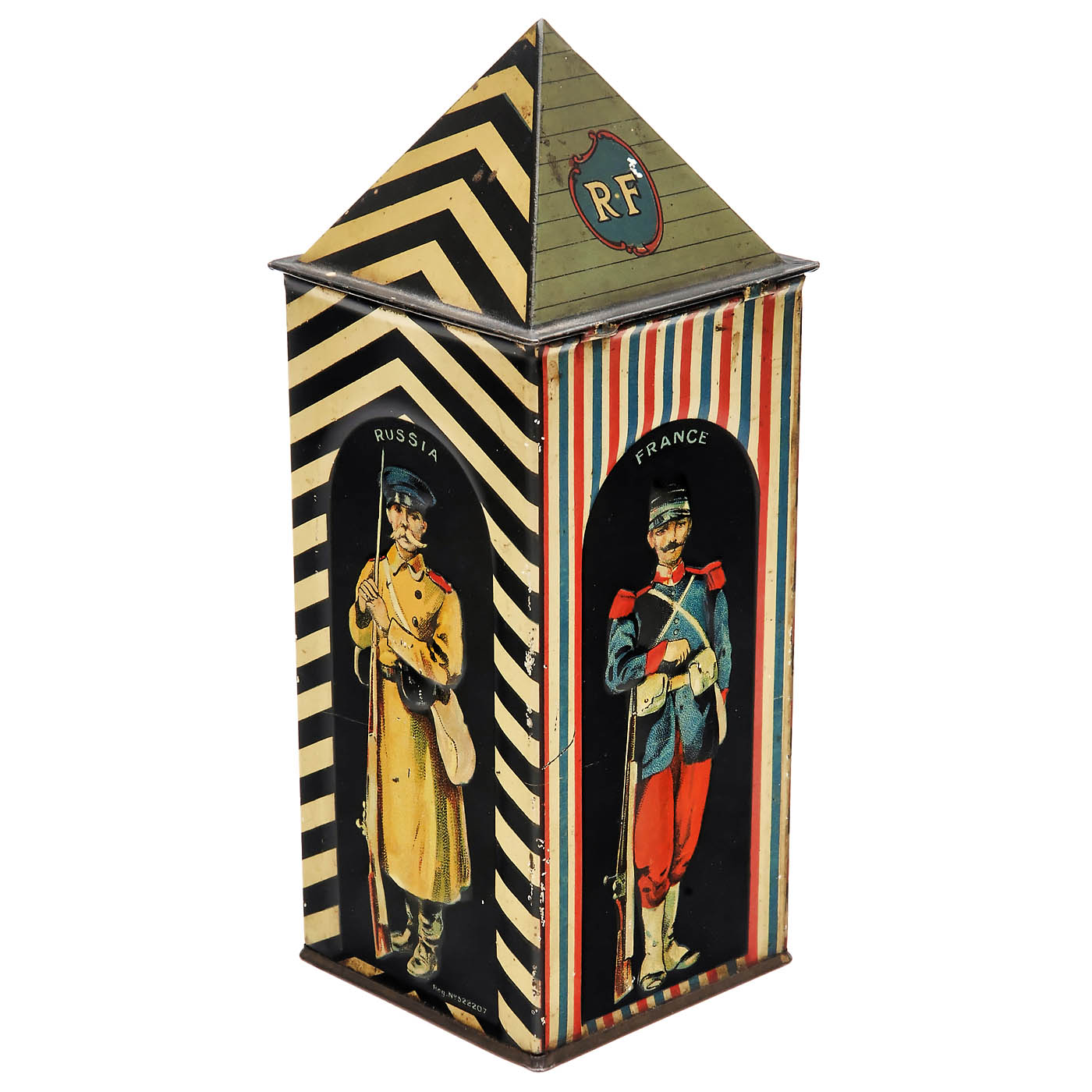 English Biscuit Tin in the Shape of a Sentry Box, c. 1910