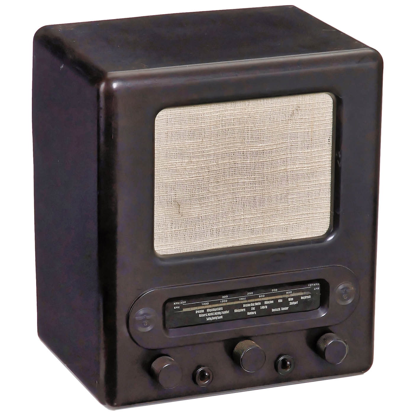 1) VE301w, TeKaDe, magnetic loudspeaker, MW + LW, 3 tubes, 110–220 volts AC, brown bakelite case, original rear panel, complete with all components, new mains cable. – 2) VE301 Dyn, Deutsche Philips, Berlin, dynamic loudspeaker, MW + LW, 3 tubes, 110–220 volts AC, bakelite case with swastika, original rear panel, good condition, with original mounting, new mains cable. – 3) VE301 Dyn, Wega, Stuttgart, dynamic loudspeaker, MW + LW, 3 tubes, 110–220 volts AC, bakelite case with swastika, Kapsch rear panel, good condition, with original mounting, new mains cable. – And: 4) VE301Wn, Lumophon, magnetic loudspeaker, MW + LW, 3 tubes, 110–220 volts AC, bakelite case, original rear panel, complete with all components.